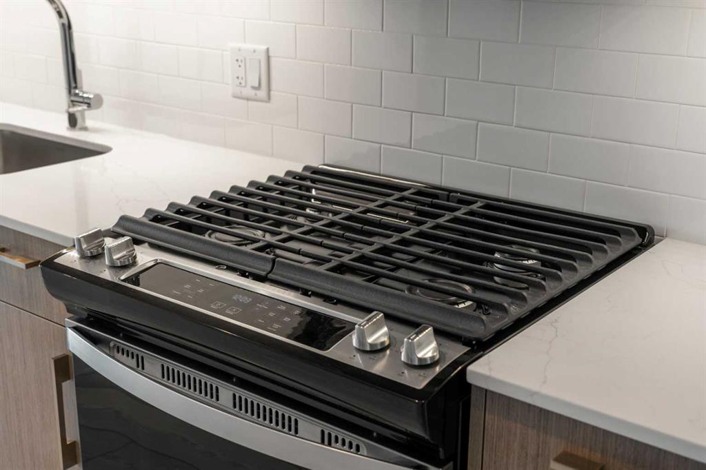 Inside, you’ll find 9-ft ceilings, a chef-inspired kitchen featuring a gas stove and oven, built-in hood fan microwave, stainless steel refrigerator, and a sleek, open-concept layout perfect for entertaining or relaxing. Large windows fill the space with natural light, creating a bright and welcoming atmosphere.