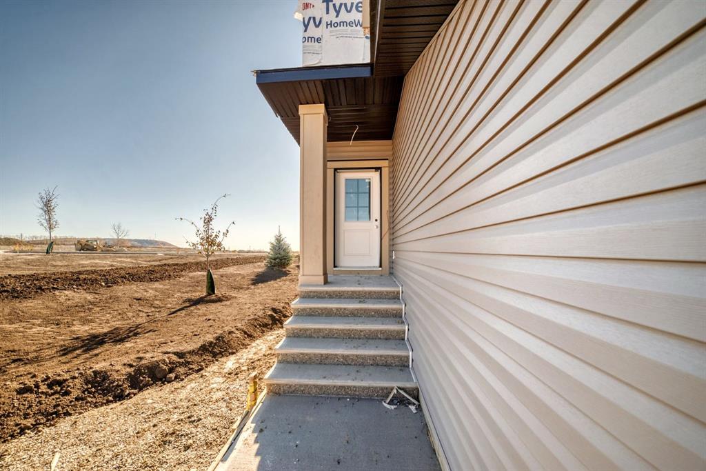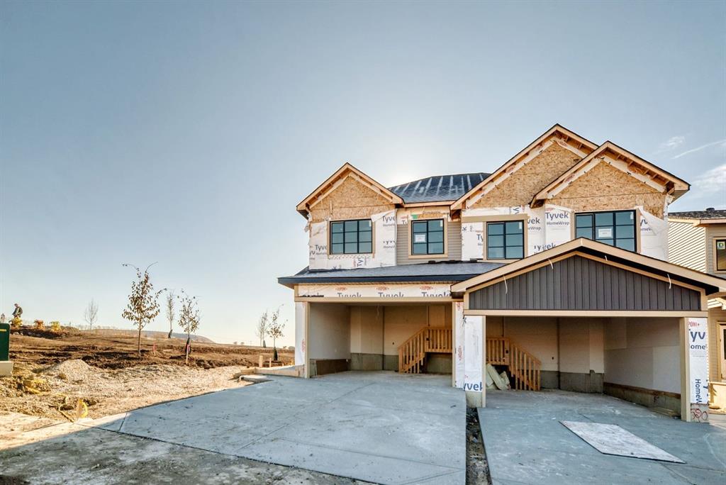 ** Open House Saturday October 25 & Sunday October 26 12-3pm ** Discover the Cambridge by Paragon Custom Homes. A stunning 1,895 sq ft corner duplex situated on a premium lot with a park right beside you in the desirable West Hawk community. This beautiful home offers abundant natural light and 9ft ceilings throughout. Inside, you’ll be greeted by a bright foyer with engineered hardwood flooring and large windows. The walkthrough mudroom with built in storage connects effortlessly from the double attached garage into the pantry, keeping you organized. The spacious kitchen features stainless steel appliances, quartz countertops, a generous island, and custom cabinetry. A large main floor office with feature walls provides versatile space for work, study, or a cozy playroom. Relax in the inviting living room with a gas fireplace, or step out to the deck and backyard. Upstairs, you’ll find a great bonus room, two generously sized bedrooms, a family bathroom, convenient laundry room, and the primary retreat boasting a vaulted ceiling, a luxurious 5-piece ensuite with a soaker tub, and a walk-in closet with custom built ins. An additional side entrance offers extra convenience for future developments or separate living spaces. Located close to schools, educational facilities, a variety of amenities, and easy access east to Calgary and west to the mountains, this home combines modern updates with classic charm in a sought after neighborhood. Just minutes from excellent dining, green spaces, and river walking paths, this remarkable property is ready for you to call home. Don’t miss your chance, schedule your showing today!