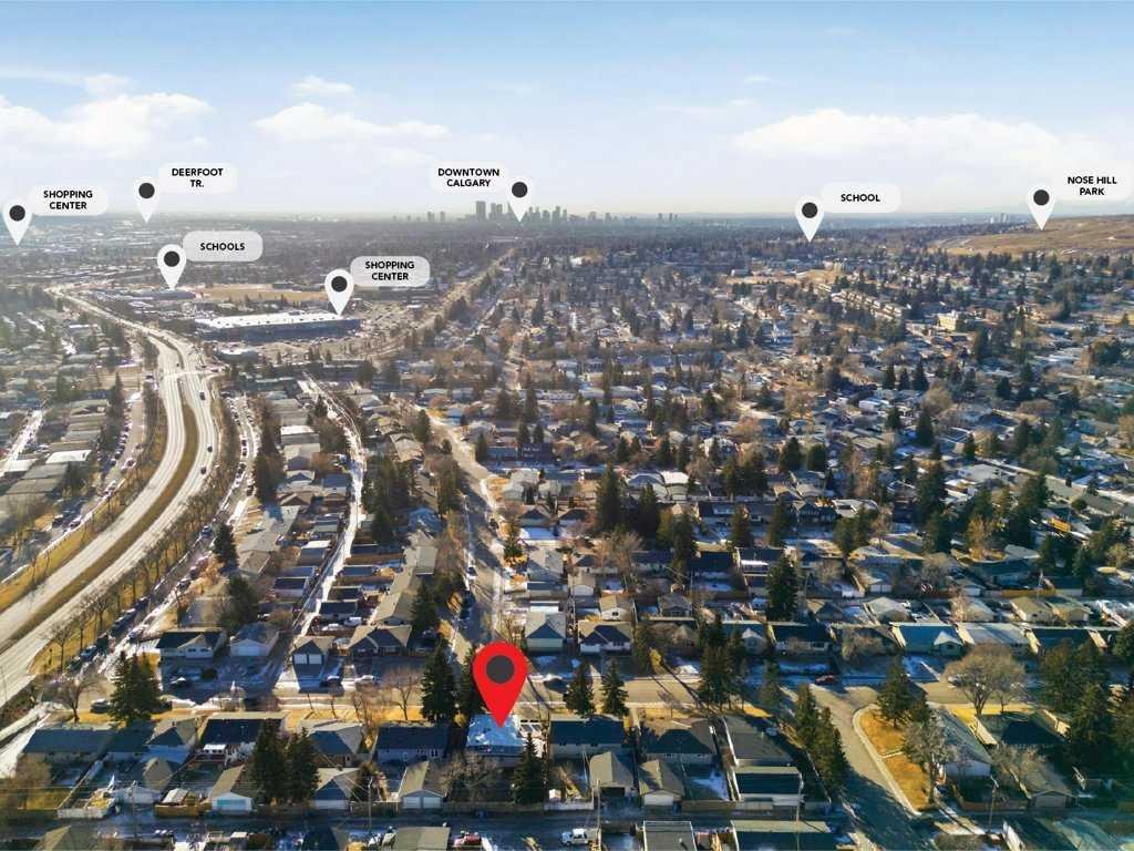 Welcome to 524 Hunterplain Hill NW, a detached home located on a quiet residential street in the established community of Huntington Hills. Offering five bedrooms and three bathrooms, this property provides a flexible layout ideal for families, multi-generational households, or buyers looking for separate living spaces. The main floor features three bedrooms, including a primary with an ensuite bathroom, along with a functional living and dining layout. The basement features a self-contained living space with two bedrooms, a full bathroom, a kitchen, and a separate side entrance, offering excellent flexibility for extended family, guests, or multi-generational living. Notable upgrades include a renovated kitchen (2012), updated windows (2012), a new Lennox furnace, a new hot water tank, and solar panels, adding energy efficiency and long-term value. A newer fully fenced backyard enhances privacy and usability. Conveniently located close to schools, parks, playgrounds, shopping, public transit, and major roadways, Huntington Hills is known for its mature trees, walkable streets, and established schools, with easy access to downtown and Calgary International Airport. This home presents a solid opportunity in a well-established northwest Calgary neighbourhood.