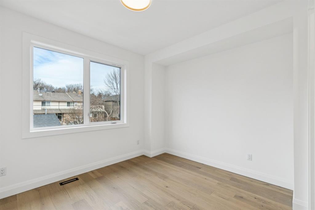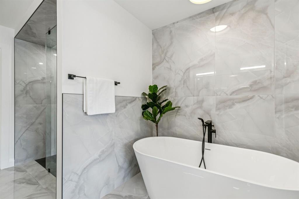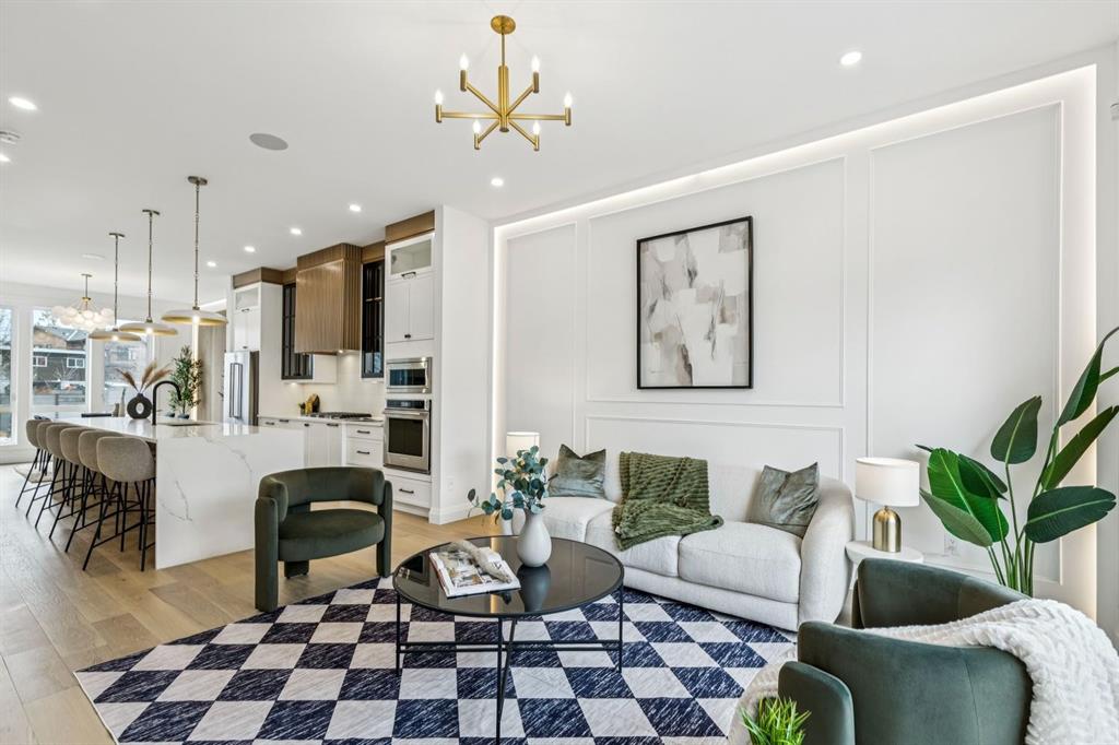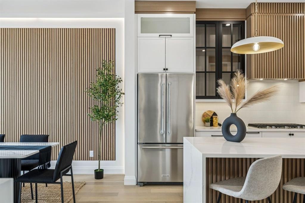 Situated just steps from the Bow River in the highly sought after community of Parkdale, this sophisticated modern residence offers over 3,600 sq ft of beautifully curated living space, blending elevated design with exceptional functionality. The bright, open concept main floor welcomes you with a spacious entry and a stunning front dining area, highlighted by an illuminated feature wall that adds warmth and architectural interest. A glass enclosed office provides a perfect work-from-home setting, while the heart of the home, an exquisite designer kitchen, impresses with an expansive 10’ quartz waterfall island, built-in wall oven and microwave, gas cooktop, and sleek cabinetry. Striking glass panelled black fronts anchor the cooking space, complemented by crisp white shaker cabinetry for a refined modern aesthetic. A thoughtfully designed pantry with bar area and beverage fridge enhances both form and function. At the rear, the airy living room with a contemporary gas fireplace opens effortlessly to the west facing backyard and low maintenance deck through sliding glass doors. The second floor offers three generous bedrooms, each with its own walk-in closet, a full bathroom, and a well appointed laundry room with sink. The primary sanctuary features floor-to-ceiling windows, a striking feature wall, and a custom walk-in closet. The luxurious 6pc ensuite boasts heated floors, a steam shower, and a deep soaker tub for a luxurious escape. The third floor loft is exceptional offering incredible versatility and elevated living. Enjoy a built-in desk area, convenient coffee bar, and a front balcony with downtown views. This level also hosts a second primary suite, complete with a private rear balcony, walk-in closet, and a lavish 6pc ensuite with heated floors, a deep soaker tub, and an oversized glass shower. The fully developed basement features a separate entrance leading to a legal suite. This thoughtfully designed space includes two spacious bedrooms, a 4pc bathroom, its own laundry, and a stylish kitchen with warm wood cabinetry, eat-up island, and full appliance package. The inviting living room is anchored by a modern media wall, while access to the utility room reveals a tankless hot water system. Outside, the landscaped yard offers ample green space for kids and pets, and leads to a double detached garage. Additional upgrades include rough-ins for security, AC, and central vacuum, along with exposed aggregate steps and walkways. Ideally located, you’re just steps to Foothills Medical Centre, and only minutes from Alberta Children’s Hospital and the vibrant University District, offering an incredible mix of dining, shopping, and everyday amenities. Surrounded by parks, pathways, cafĂ©s, and the natural beauty of the Bow River, this exceptional home delivers the perfect balance of luxury, comfort, and convenience.