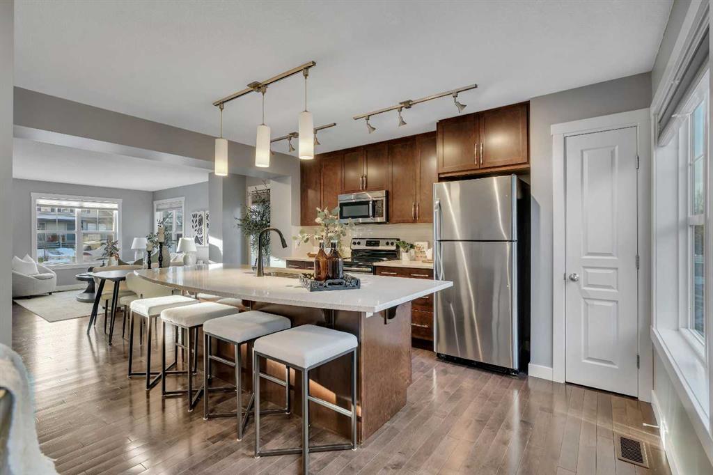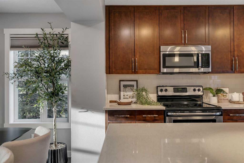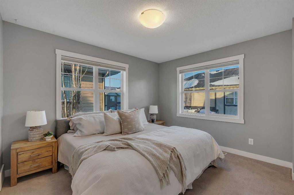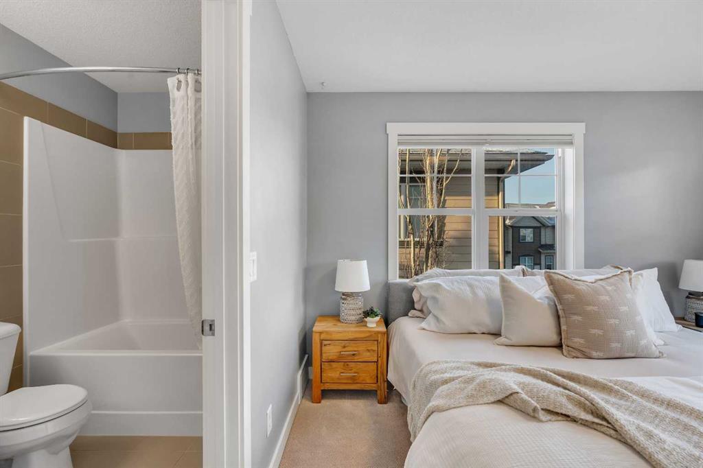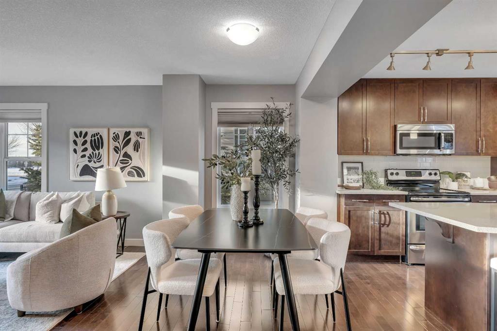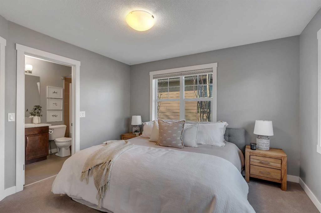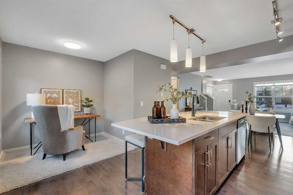 Pride of ownership shines throughout this meticulously maintained, move-in ready end-unit townhome. Step inside to a bright, inviting open-concept main floor, where an abundance of natural light pours through expansive windows, creating a warm, welcoming atmosphere. Thoughtfully designed for both everyday living and entertaining, the space is finished with natural hardwood floors and a stylish chef-inspired kitchen featuring stainless steel appliances, a quartz island, and ample cabinetry. A versatile den on the main level provides the perfect home office or additional storage, while a conveniently located half bathroom completes this floor. Offering over 1,200 sq. ft. of above-grade living space, the upper level continues to impress with a dedicated laundry room and extra storage. Two generous primary bedroom suites each feature walk-in closets and private en-suites appointed with quartz countertops and shower combinations—ideal for shared living or hosting guests with ease. The fully developed basement adds valuable living space with a comfortable recreation area and direct access to the heated double detached garage, a rare and highly desirable feature. Combining comfort, functionality, and an unbeatable location, this exceptional townhome delivers low-maintenance living without compromise—perfect for professionals, downsizers, or savvy investors alike. Unbeatable walkability to local shops, restaurants, parks, and picturesque walking trails in the desirable community of McKenzie Towne.