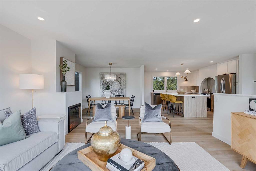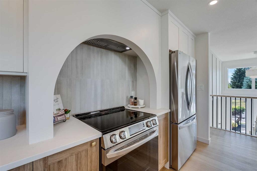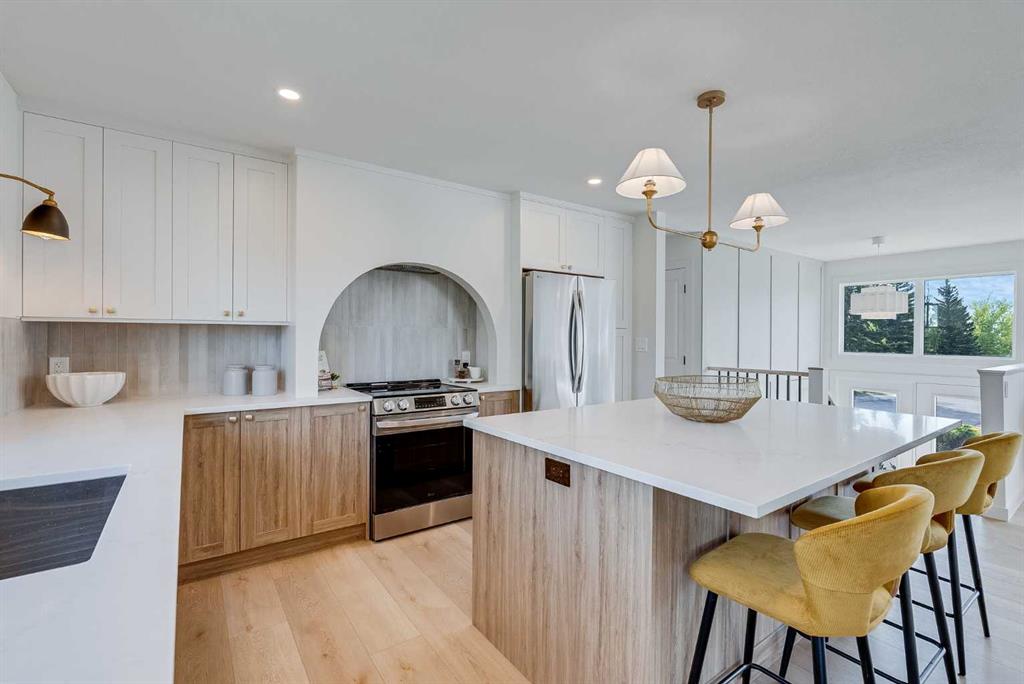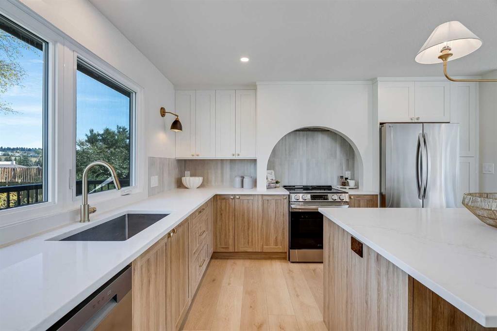 OPEN HOUSE – SATURDAY OCTOBER 4th & SUNDAY OCTOBER 5th 12-2pm FULLY PERMITTED RENOVATION | 2025 WINDOWS | 2025 FURNACE | BACKS ON TO GREEN SPACE | This is the one you’ve been waiting for! Nestled on a quiet, tree-lined street in the highly desirable NW community of Dalhousie, this professionally renovated and fully permitted 4 bedroom, 3 bathroom home with over 1800 sq. ft. of living space, blends modern style with family-friendly functionality. Step inside to discover a bright and airy open-concept layout featuring luxury vinyl plank flooring, all-new windows and doors (2025), and thoughtful high-end finishes throughout. The brand-new designer kitchen is the heart of the home showcasing quartz countertops, a large center island, sleek new appliances, bar fridge, eye catching arch range hood and a walk-in pantry that makes storage a breeze. The spacious primary suite offers a private retreat with a walk-in closet and a gorgeous ensuite bathroom with custom tiled shower and glass enclosure. The main floor family room features a new, built-in electric fireplace, dining room and large 8ft. patio slider door that leads to the updated, pressure treated-wood front balcony. The fully finished basement provides additional living space with a recreation room including a large, newly inspected and cleaned wood-burning fireplace, a 4th bedroom with closet and egress compliant window, full 3 piece bathroom, an updated laundry room with new stacked laundry center and under-stair storage. A new, 2025 furnace and hot water tank are nestled in the convenient and ample utility room with access from the oversized, 2 car garage. Step outside and fall in love with the private, beautifully landscaped backyard, complete with mature gardens and trees, new pressure-treated deck and no rear neighbours – just peaceful views of the off-leash green space behind. Whether you’re relaxing on the deck or entertaining friends and family on the grassed lawn, this yard is your own little oasis. Located minutes from top-rated schools, parks, shopping, public transit, and major commuter routes, this home offers incredible lifestyle and convenience in one of Calgary’s most established neighbourhoods. Don’t miss your chance to own this turn-key gem in Dalhousie, truly a must-see!
