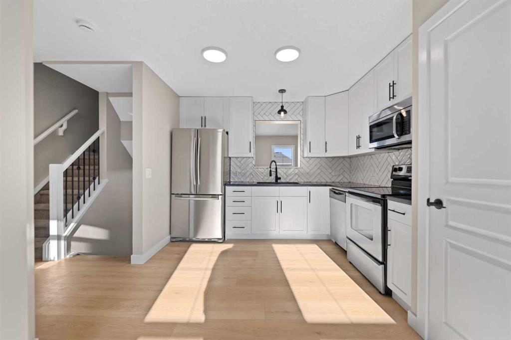 Fully renovated and move-in ready, this 1,273 sq. ft. home has been meticulously updated from top to bottom. Experience a fresh, modern aesthetic with all-new flooring, crisp designer paint, and sleek new hardware throughout. The soaring 16-foot ceilings in the living room create a grand sense of space, flooded with natural light. The heart of the home features a totally renovated kitchen with stylish cabinetry and stainless steel appliances, opening onto a private east-facing balcony. Adding significant value is the brand-new basement development, offering a versatile area for a home gym, media room, or guest space. Located in the desirable Milano complex, you are just steps away from scenic pathways, ponds, and top-rated schools. This is a rare opportunity to own a “like-new” property in an established, amenity-rich community.