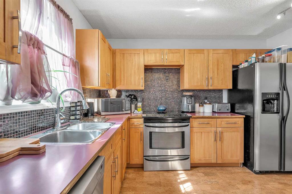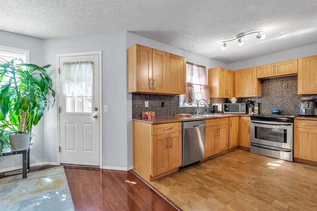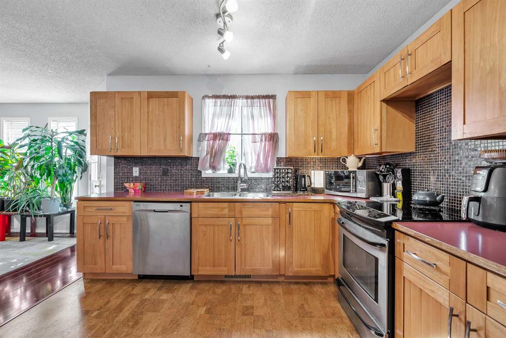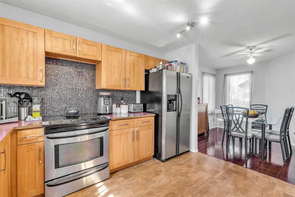Welcome to this beautifully maintained two-story home situated in the heart of the established community of Shawnessy. As you step inside, you are greeted by a functional and inviting layout that seamlessly connects the main living spaces. The updated kitchen serves as a central hub, boasting newer stainless steel appliances, modern cabinetry, and durable cork flooring that adds both comfort and style. Adjacent to the kitchen is a bright breakfast nook for casual meals, while the spacious formal dining room features elegant French doors, making it an ideal spot for hosting dinner parties. The living room provides a cozy retreat, anchored by a traditional wood-burning fireplace with a classic brick surround that adds warmth and character to the home. The upper level is designed with family living in mind, offering three well-appointed bedrooms. The primary suite serves as a private oasis, complete with its own three-piece ensuite bathroom. An additional four-piece bathroom services the other two bedrooms, ensuring plenty of space for everyone. Practicality meets convenience on the main floor, which includes a 2-piece powder room combined with a laundry area. Notable upgrades throughout the property provide peace of mind and energy efficiency, including a high-efficiency furnace, a newer hot water tank, and all new windows throughout the main and upper floors. The home is also equipped with a Vac-u-Flo system for easy maintenance and a double attached garage for secure parking and storage. The outdoor living space is equally impressive, featuring a sunny southwest-facing backyard that captures natural light throughout the day. You can enjoy quiet afternoons on the large deck, surrounded by the privacy of mature trees and a neatly landscaped yard with back lane access. This property perfectly balances modern updates with timeless charm in a location close to schools, shopping, and transit. Call me today for your personal viewing and see everything this wonderful home has to offer.