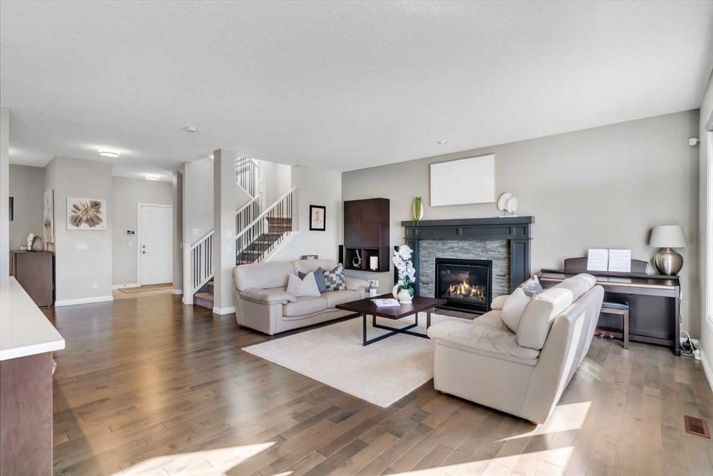 The fully finished walkout basement offers incredible flexibility with a fourth bedroom, a modern bathroom with a tiled stand-up shower, a private office ,and a large rec room that could serve as a media room. Step outside to the huge backyard — ideal for kids, pets, and entertaining — complete with a cozy fire pit area. Additional features include central A/C, dual newer furnaces, a newer hot water tank, an oversized driveway, & triple-pane windows throughout. Conveniently located with just 20 minutes to Calgary, 30 minutes to Downtown, and only an hour from the mountains, this home truly offers the best of both worlds. This is your opportunity to own a stunning home with a modern spacious layout on an expansive lot with gorgeous views from all levels. Welcome Home!
