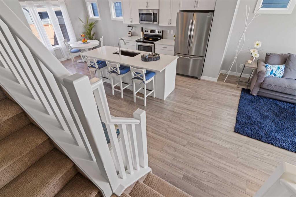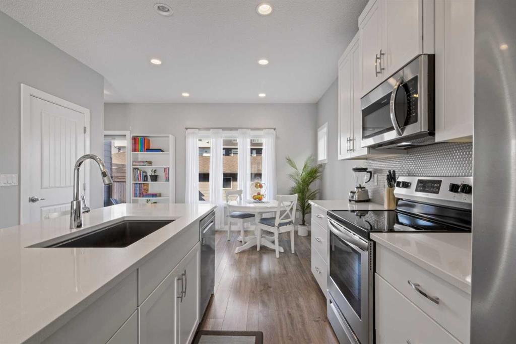 Beautifully maintained and thoughtfully laid out, this charming 2 BED/2.5 Home in Walden offers comfortable living with just the right amount of style. From the moment you walk in, you’re welcomed by a bright front family room that feels warm and inviting, and flows seamlessly into the heart of the home. The kitchen is both modern and functional, featuring quartz countertops and a sleek, flat island that’s perfect for everyday living, whether you’re preparing meals or gathering with family and friends. Toward the back, the dining area is filled with natural light from larger windows and overlooks your private backyard. A tucked away two piece bathroom adds convenience without taking away from the flow of the main floor. Step outside and you’ll find a great setup with a deck for relaxing, a good sized yard and a detached double garage. Added comfort comes with central air conditioning, keeping the home cool through the warmer months. Upstairs, both bedrooms are thoughtfully designed with their own walk in closets and private ensuites, offering a level of comfort and privacy that’s hard to find. Laundry is also conveniently located on this level. The unfinished basement provides the opportunity to create additional space that suits your needs. All of this in the community of Walden, close to shopping, groceries, restaurants and schools, making everyday living simple and convenient.