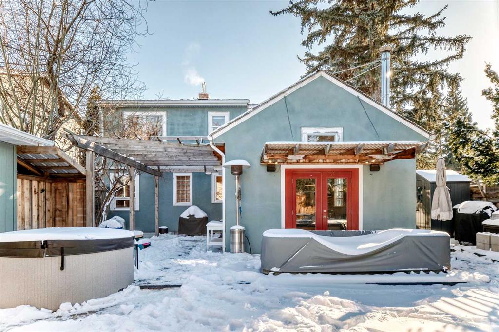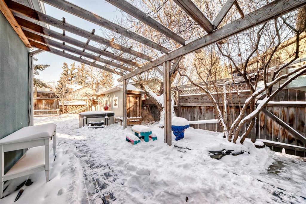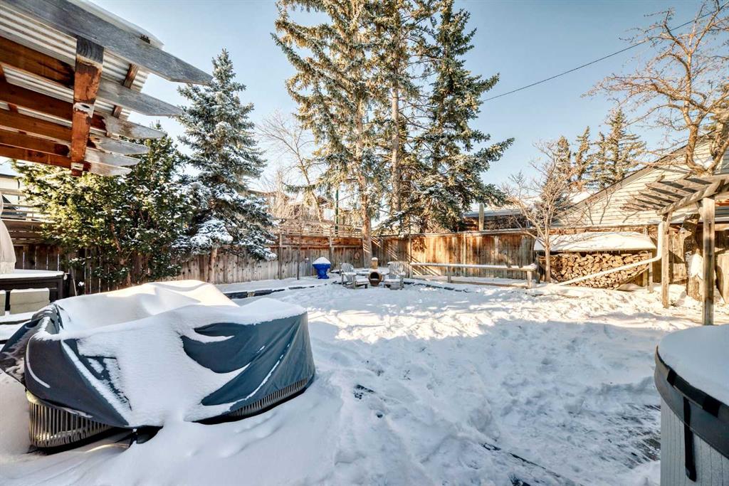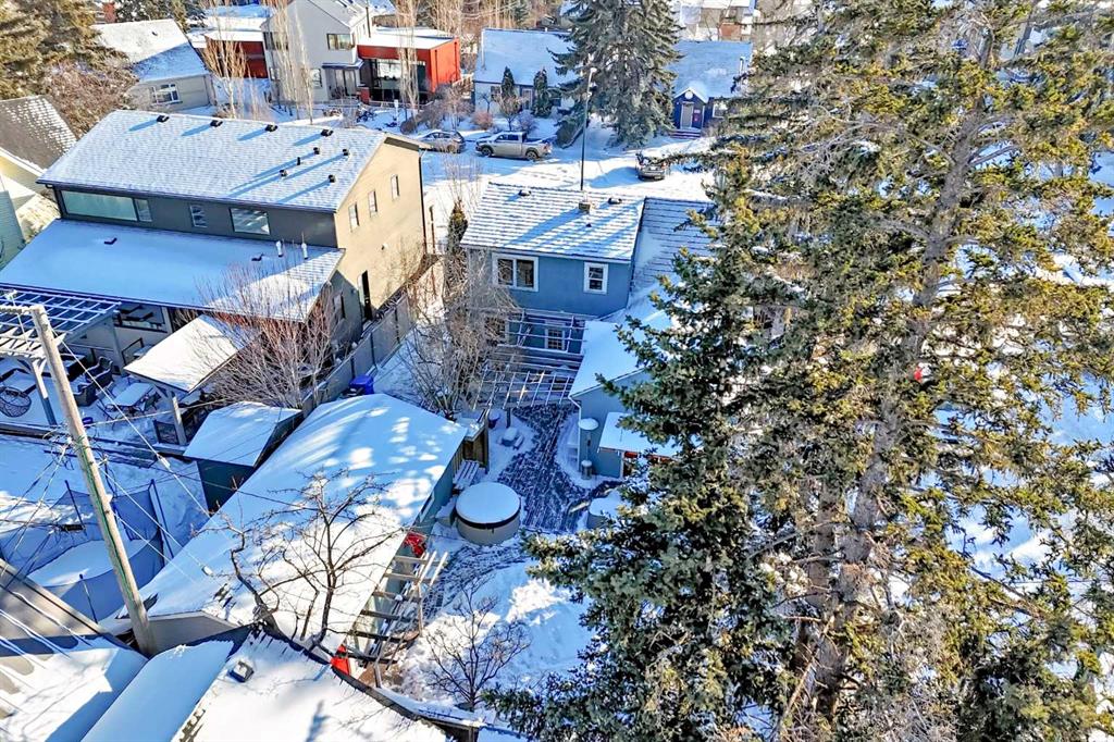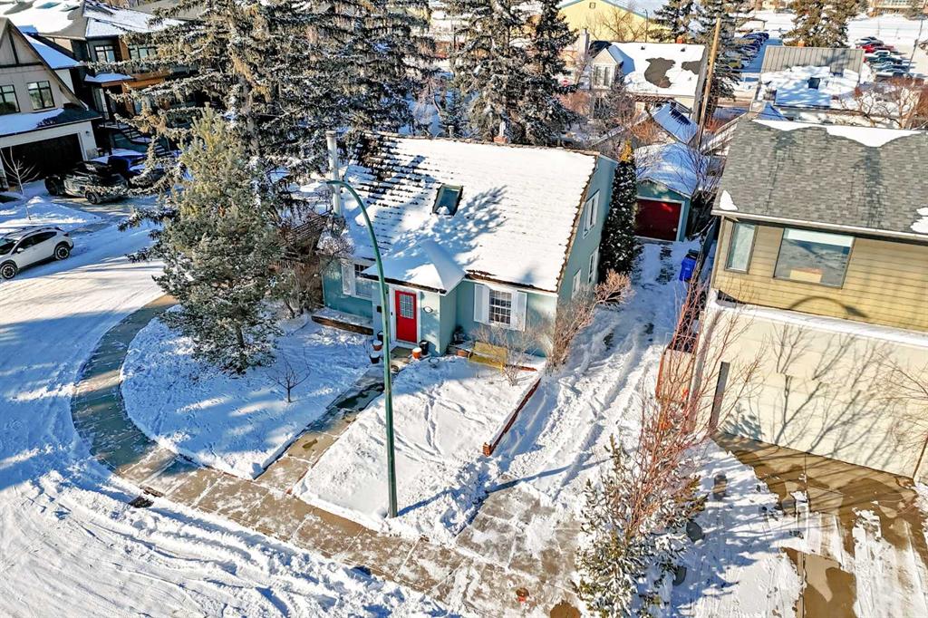 Prime location in sought-after West Hillhurst! This exceptional 50’ x 100’ R-CG corner lot is perfectly situated on one of the rare cul-de-sacs in West Hillhurst, offering both privacy and unbeatable convenience. Just minutes from downtown Calgary, the river pathways, the vibrant shops and restaurants of Kensington, top-rated schools, parks, and the outdoor pool—this location truly offers the best of inner-city living. This charming 4-bedroom, 3-bathroom home is filled with warmth and character and is flooded with natural light from the moment you step inside. Lovingly maintained with numerous upgrades over the years, it clearly reflects pride of ownership throughout. The main floor welcomes you with a bright front living room featuring a cozy corner fireplace, a renovated kitchen with granite countertops and newer appliances, and a full bathroom complete with a relaxing jetted tub. Two spacious bedrooms complete the main level. Toward the rear of the home, a stunning sunken family room showcases open beam ceilings and two fireplaces—creating the perfect space for relaxing or entertaining. Upstairs, you’ll find a generous primary bedroom, a fourth bedroom, a full bath, and a skylight that fills the stairwell with natural light. The fully developed lower level offers even more living space with a comfortable family room, media/games room, and a third full bathroom. Step outside through the French doors from the family room and enjoy the summer breeze in your beautifully landscaped, private backyard retreat, complete with a hot tub—ideal for relaxing or hosting friends and family. The oversized single garage is extra deep at 13’4” x 27’4”, and the long driveway along the east side of the lot provides additional off-street parking—a rare and valuable feature in this desirable inner-city neighbourhood. The R-CG zoning and corner lot create excellent future redevelopment potential, making this property equally attractive for homeowners, investors, or builders looking to take advantage of this prime inner-city location. Possession can be quick!