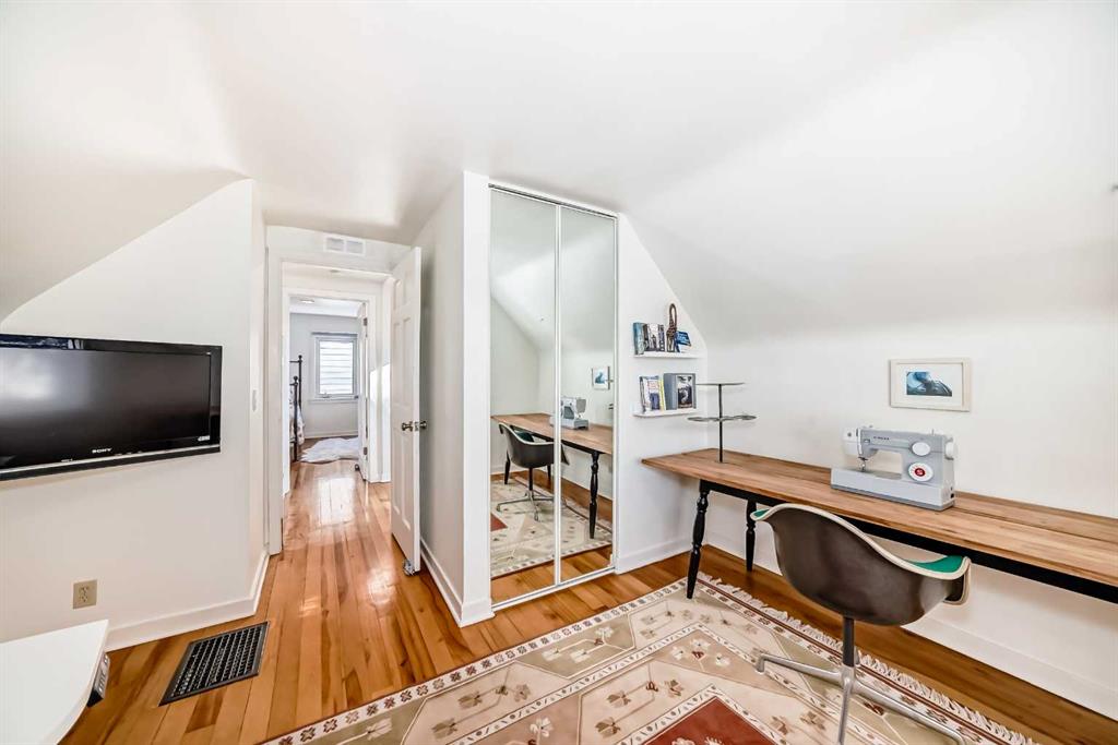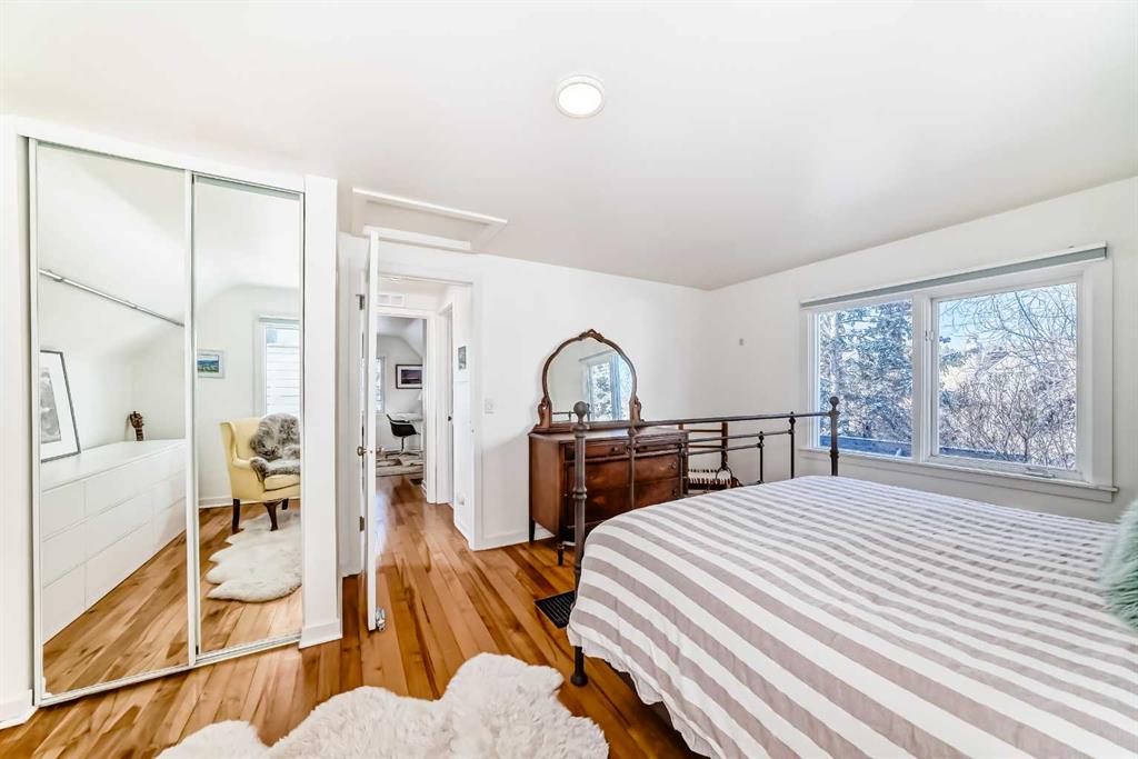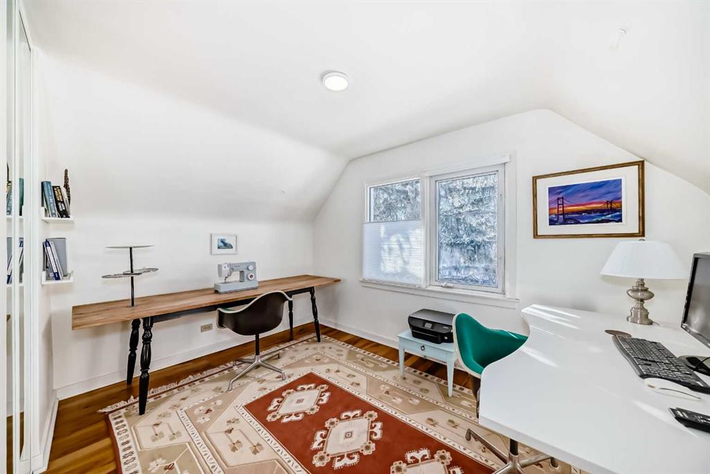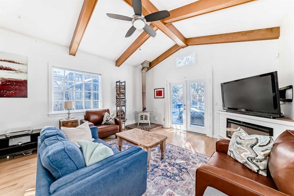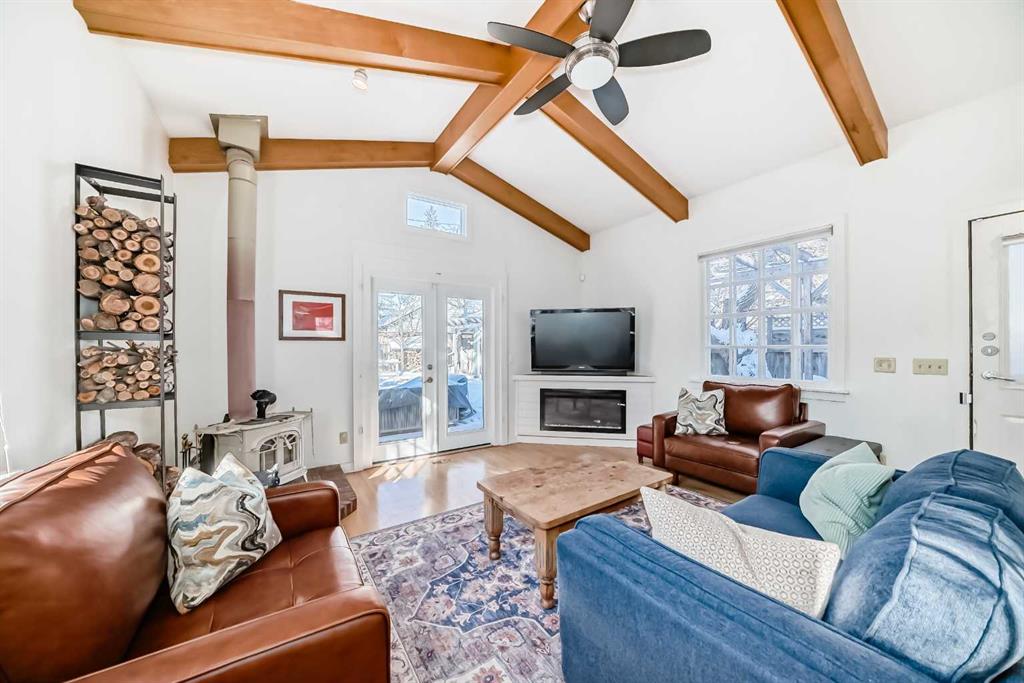 Prime location in sought-after West Hillhurst! This exceptional 50’ x 100’ R-CG corner lot is perfectly situated on one of the rare cul-de-sacs in West Hillhurst, offering both privacy and unbeatable convenience. Just minutes from downtown Calgary, the river pathways, the vibrant shops and restaurants of Kensington, top-rated schools, parks, and the outdoor pool—this location truly offers the best of inner-city living. This charming 4-bedroom, 3-bathroom home is filled with warmth and character and is flooded with natural light from the moment you step inside. Lovingly maintained with numerous upgrades over the years, it clearly reflects pride of ownership throughout. The main floor welcomes you with a bright front living room featuring a cozy corner fireplace, a renovated kitchen with granite countertops and newer appliances, and a full bathroom complete with a relaxing jetted tub. Two spacious bedrooms complete the main level. Toward the rear of the home, a stunning sunken family room showcases open beam ceilings and two fireplaces—creating the perfect space for relaxing or entertaining. Upstairs, you’ll find a generous primary bedroom, a fourth bedroom, a full bath, and a skylight that fills the stairwell with natural light. The fully developed lower level offers even more living space with a comfortable family room, media/games room, and a third full bathroom. Step outside through the French doors from the family room and enjoy the summer breeze in your beautifully landscaped, private backyard retreat, complete with a hot tub—ideal for relaxing or hosting friends and family. The oversized single garage is extra deep at 13’4” x 27’4”, and the long driveway along the east side of the lot provides additional off-street parking—a rare and valuable feature in this desirable inner-city neighbourhood. The R-CG zoning and corner lot create excellent future redevelopment potential, making this property equally attractive for homeowners, investors, or builders looking to take advantage of this prime inner-city location. Possession can be quick!