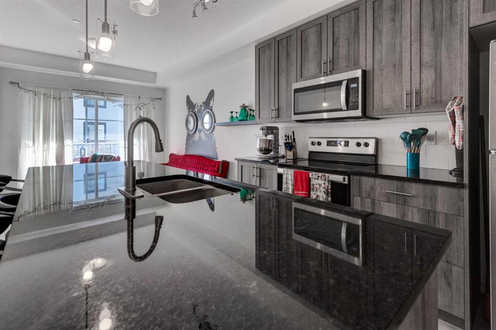 Legacy living where city and nature meet. This modern unit (less than 5 years old) with 2 bedrooms and 2 bathrooms features in-suite laundry, a breakfast bar island, high ceilings, stone countertops, stainless steel kitchen appliances, and lots of cupboards! The bright south facing balcony is the perfect place to enjoy your morning coffee in the sunshine or have a relaxing glass of wine while grilling your steak dinner on your included gas bbq. You’ll love how convenient your dedicated storage cage in the parkade is and your own titled underground parking spot. The primary bedroom features a walkthrough closet and the ensuite is a full 4 piece bathroom. A second 4 piece bathroom and 2nd bedroom offers flexible space to use as a bedroom or a home office that meets many lifestyles. With both amenities and greenspaces nearby you get the charm of the neighbourhood’s parks, water features and walking trails, as well as the conveniences of shopping, restaurants, and services nearby. If you have pets, you’ll love this place! Pets must be approved, but you can have up to 2 dogs, cats, or a combination
