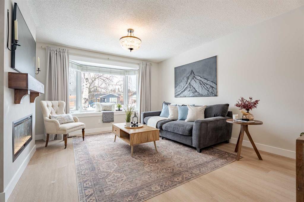 The bright living room features a large bay window and a sleek electric fireplace, creating a warm, designer focal point. The eat-in kitchen is both functional and beautiful, offering generous prep space, a breakfast bar, pantry, updated appliances (fridge 2020, dishwasher 2021), and a sunny dining nook overlooking the backyard. The main floor includes a spacious primary retreat plus two great-sized bedrooms. Downstairs, the fully finished basement delivers flexible space for a media lounge, home office, gym, or playroom — along with a 3-piece bath featuring a newer tub. Major upgrades are complete: high-efficiency furnace (2021), tankless hot water, shingles (2015), windows and doors replaced (2012), custom blinds — and air conditioning to keep you comfortable all summer long. Outside, enjoy an 18×20 deck with gas line for BBQ nights, fire pit evenings, plenty of green space, two storage sheds, and an extra-deep driveway for easy hosting. Minutes from Fish Creek Provincial Park, the Bow River, and Sikome Lake, with quick access to major routes — this home is polished, move-in ready, and effortlessly stylish.