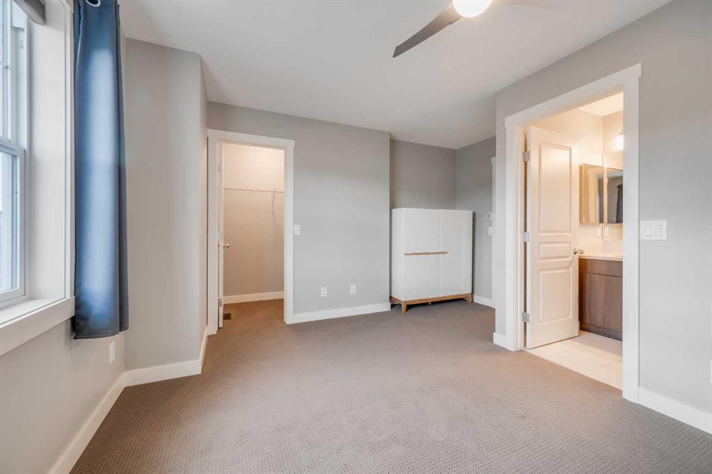 Meticulously maintained and move-in ready, this townhome offers unbeatable walkability to nearby shops, restaurants, parks, and scenic walking trails. The main level features an open-concept layout with a spacious living and dining area, a stylish 2-piece powder room, and a well-appointed kitchen complete with a large quartz island, quality cabinetry, stainless steel appliances, and access to an upgraded deck—perfect for everyday living and entertaining. Upstairs, you’ll find a bright flex space ideal for a home office or reading nook, along with two generous primary bedrooms, each offering walk-in closets and private ensuites featuring quartz countertops and tub/shower combos. The lower level includes a laundry area, storage space, and direct access to the double attached garage. With plenty of extra parking right out front, low-maintenance living. McKenzie Towne offers charming architecture, parks, schools, and a vibrant community with many amenities and access to nature. Schedule your private showing today!