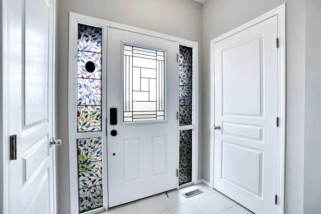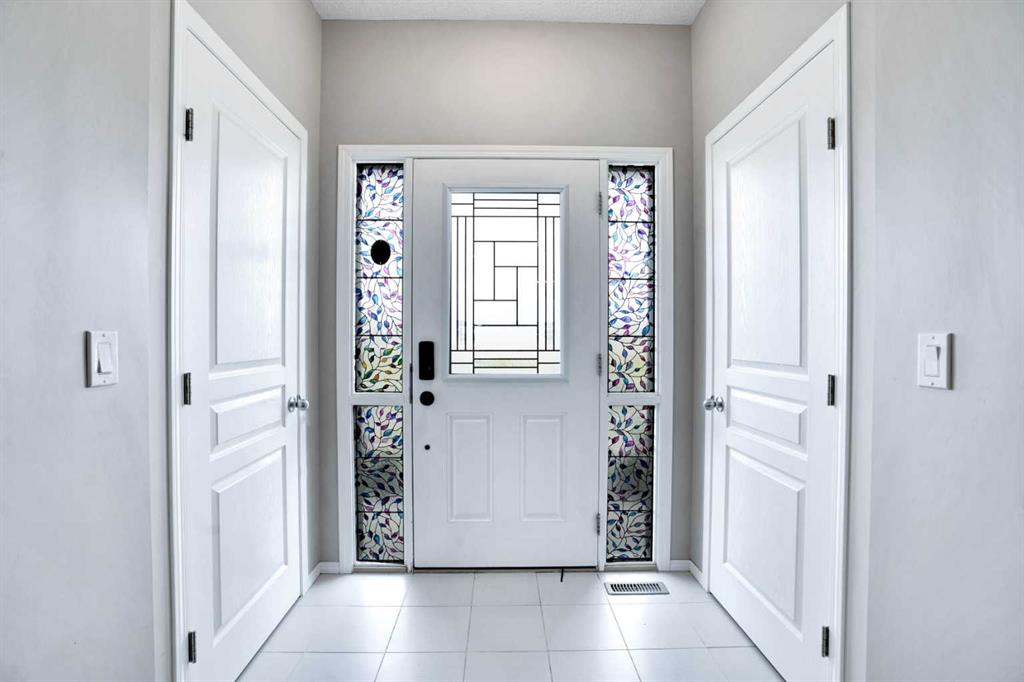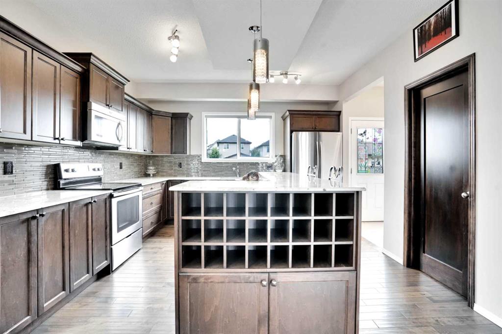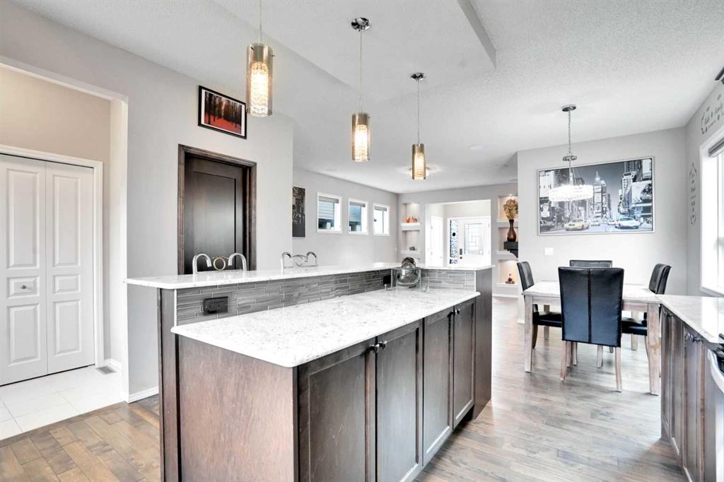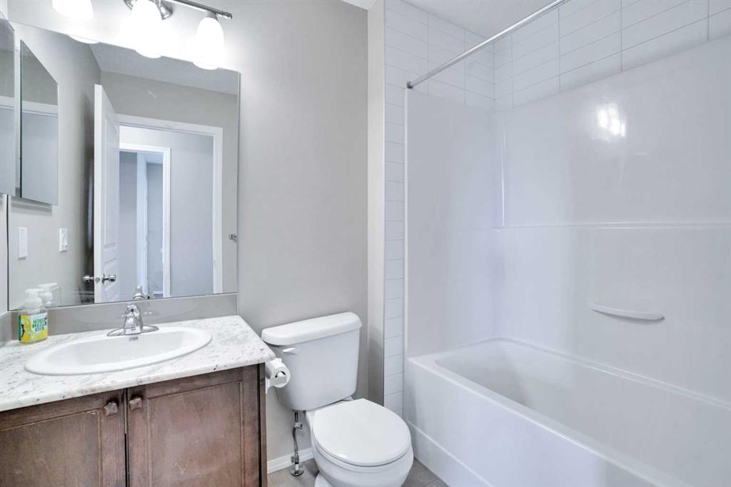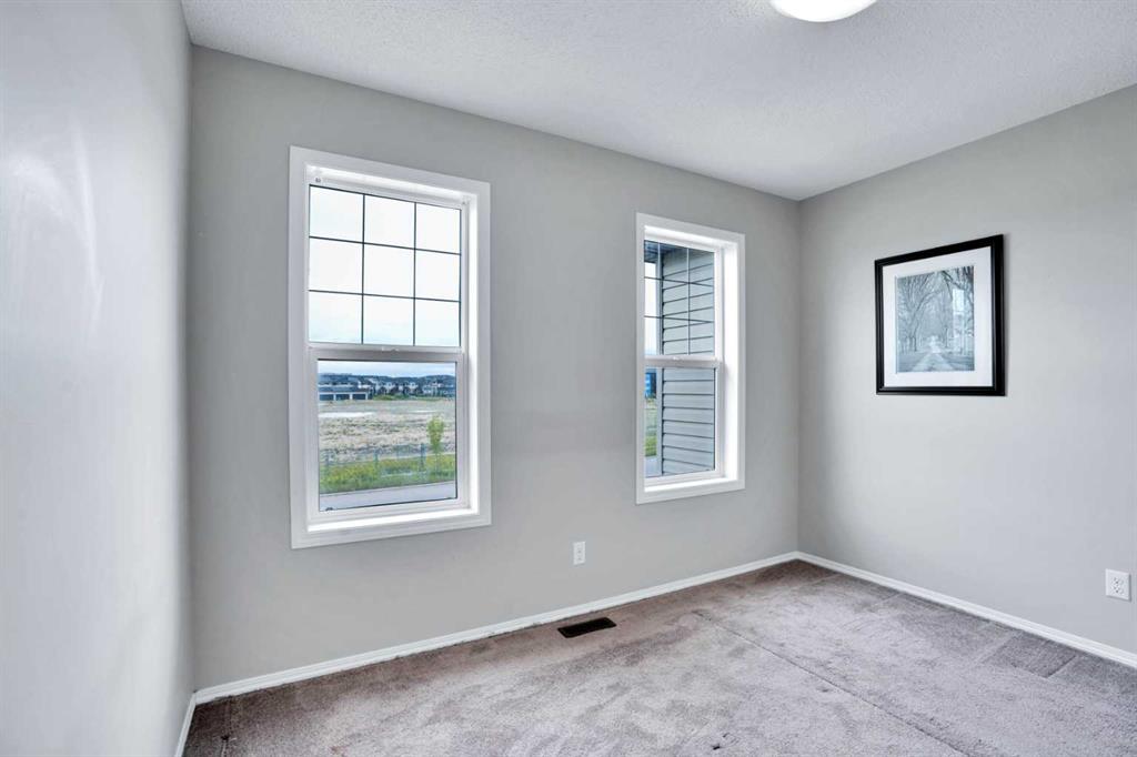 Welcome to this beautiful one owner, move-in ready single family home in the established community of Skyview Ranch. Walk in to a lovely open floor plan, bright with natural light from large windows and from stylish modern lighting on the nine-foot ceilings. Rich hardwood floors accentuate the main-floor living area, with durable and beautiful tile at both front and back entrances. The spacious kitchen includes tons of work and storage space, with a large island, breakfast bar, and ample cabinets, finished with lovely granite countertops and upscale stainless steel appliances. The large walk in pantry and built-in wine rack complete this handsome and practical kitchen. Living room features a gas-burning fireplace , topped by a solid wood mantle with wall mounted television and built-in ceiling speakers. Built-in lighted shelves in the living room highlight your treasures. To complete the main floor, a two-piece bath is located off the living room. Upstairs, the spacious master bedroom looks out over the backyard. It comprises ample space for a king-sized bed, and boasts a lovely ensuite with over-sized soaker tub and walk in closet. There are second and third bedrooms upstairs for the kids or home office. The upstairs also features a four piece main bath and convenient laundry facilities. The home has dual front-door closets and a huge back closet for storage of all your outdoor essentials. An added bonus is central air conditioning. The basement includes rough in for a future bathroom and has unlimited potential for whatever type of additional space your family needs. This home features a large open back yard with poured garage pad saving you the cost while building your own double garage, gas barbecue hook-up on the deck, and side fencing. This home is located in family-friendly Skyview Ranch, near parks, schools, walking paths, transit and amenities, and with easy access to Stoney and Deerfoot Trail.
