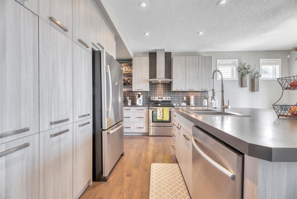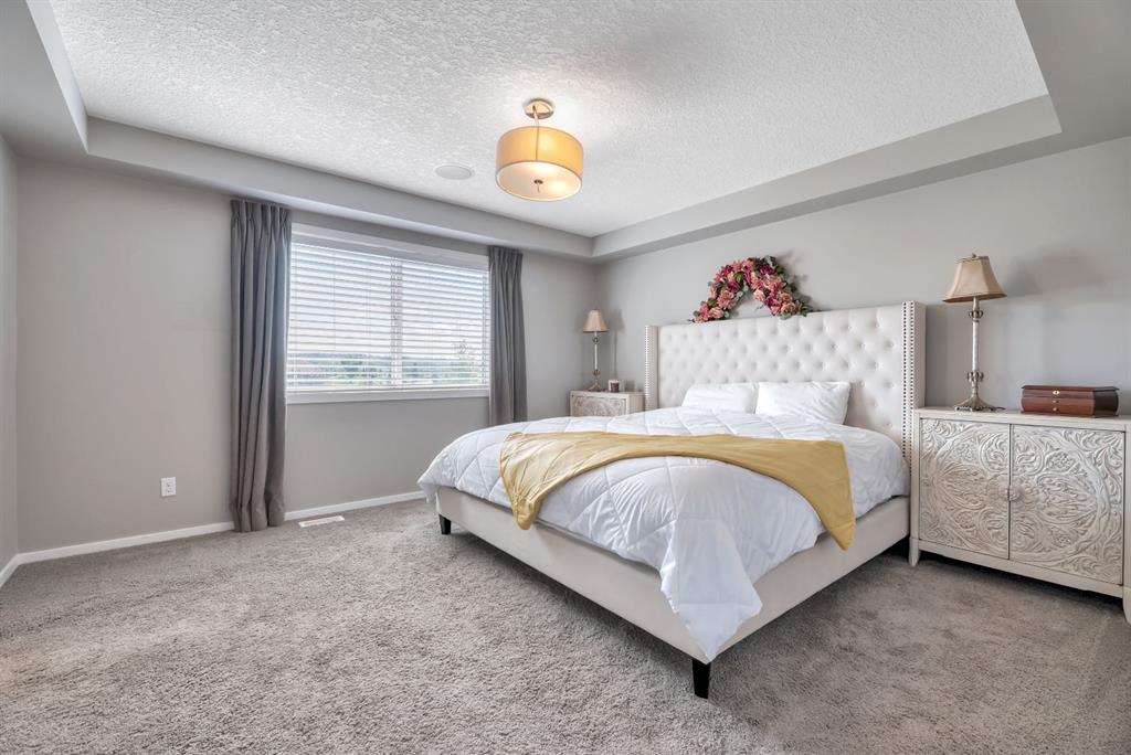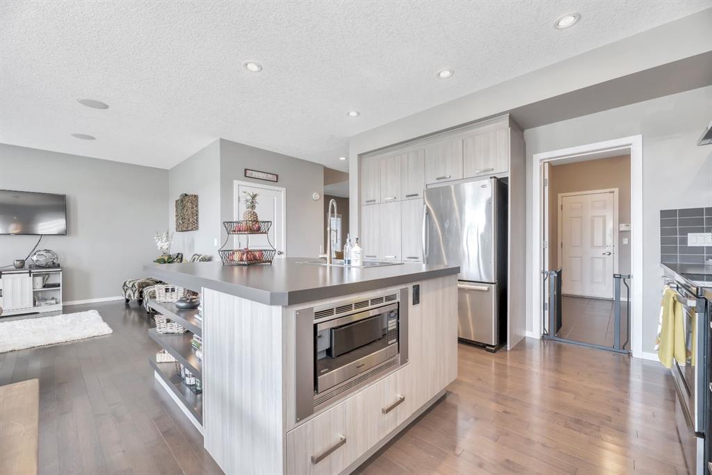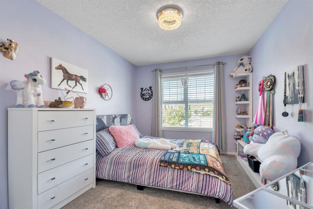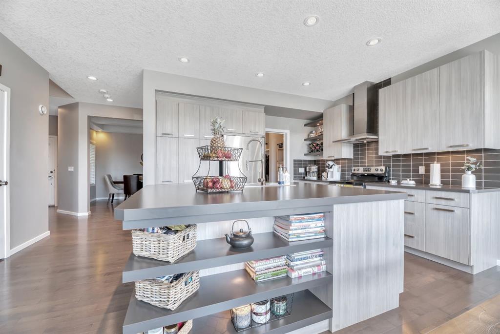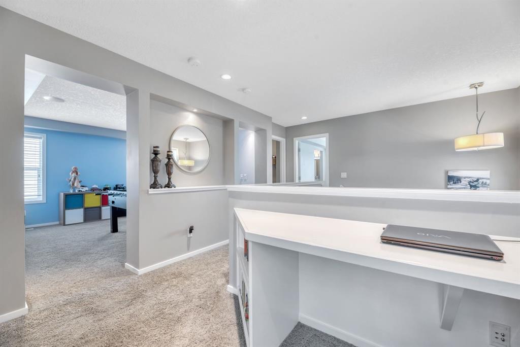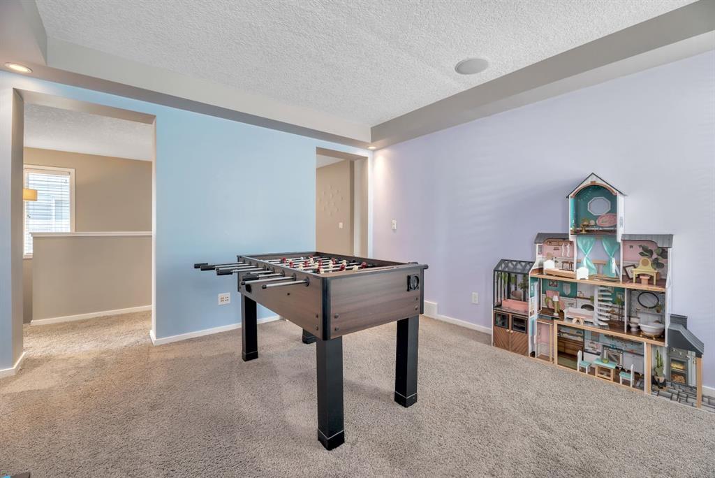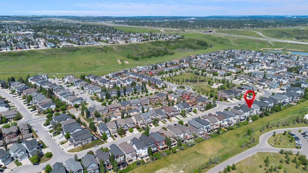Welcome to a stunning WALKOUT and FORMER SHOWHOME BACKING ONTO the Blue Devil Golf Course that can be enjoyed from the FULL DECK spanning the entire width of the home along with the eating area, great room, the walkout level with CONCRETE PATIO, and the peaceful primary bedroom. The home is over 2200 sq. ft. and features a front flex room, large enough to have a dining table or make a great office with elegant COFFERED ceilings. Gleaming maple HARDWOOD floors, POTLIGHTS galore, and a big, bright MODERN KITCHEN featuring an island for prep with lighted accent shelving and a pantry wall – loads of cabinetry! The spacious primary features a tray ceiling, comfort height vanity with dual sinks, a corner soaker tub and separate shower. The generous walk in closet is conveniently attached to the UPSTAIRS LAUNDRY room. Separating the primary from the two additional bedrooms and secondary full bath is a CENTRAL BONUS ROOM with 2 openings and a niche wall in the hallway. Very cool for a media or play room! Additionally, there is a BUILT IN TECH CENTRE/DESK – so many places for activities! This home comes complete with stainless steel kitchen appliances and front load washer and dryer, BUILT IN SPEAKERS with locations throughout the home, knockdown ceiling texture plus a gorgeous full height tiled FIREPLACE with floating hearth as well as CENTRAL AIR Conditioning and CENTRAL VAC SYSTEM. Appreciate the BRAND NEW WALKOUT basement with 4 pc bath, rec room and sizable bedroom to finish this awesome home! Check out this LOCATION – With Fish Creek Park’s trails and pathways, Lake Sikome, schools, and shopping nearby, this is an unbeatable lifestyle in one of Calgary’s most sought-after communities. This gorgeous, well kept home must be seen!