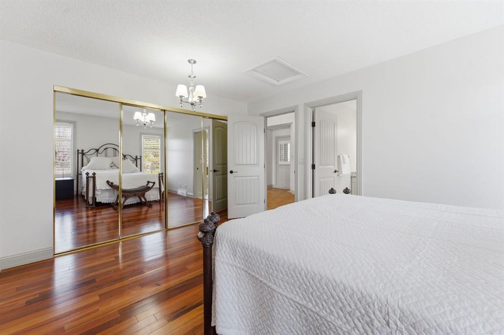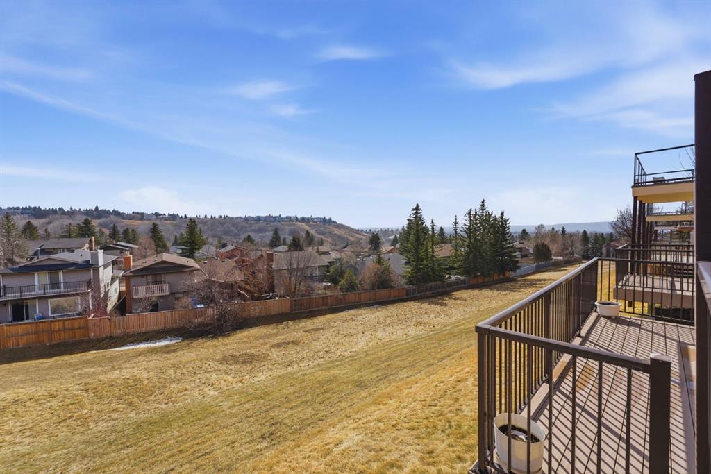 Discover 54 Edgeland Close NW—a beautifully maintained villa-style home in the prestigious Summit Point Estates of Edgemont. Perfectly positioned backing directly onto lush greenspace, this rare property offers breathtaking city and valley views from your private west-facing deck and select main-level windows. Enjoy unparalleled privacy and tranquility surrounded by mature trees, rolling green belts, and natural beauty—all steps from everyday conveniences. Completely updated throughout with fresh neutral décor, high-end plantation shutters on every window, and exquisite Brazilian Tigerwood hardwood flooring flowing seamlessly through most of the main floor. The home features a brand new high-efficiency furnace, central air conditioning, newer shingles and fresh exterior paint for lasting curb appeal and worry-free ownership. The sun-filled main level welcomes you through a large front entrance with vaulted ceilings and generous windows framing beautiful views. Open-concept living and dining area flows to a living room anchored by a gas fireplace featuring elegant oak mantle and stone facing, complemented by oak built-in bookshelves adding character and function. The chef’s kitchen offers abundant oak cabinetry, granite countertops, stainless steel appliances, large pantry, in-floor heating for comfort, and garden door to west-facing balcony with gas BBQ hookup—ideal for outdoor dining. Both balcony and lower deck feature new Duradek surfaces for fresh, durable, low-maintenance enjoyment. The oversized primary bedroom easily accommodates king-sized bed with 4-piece ensuite featuring in-floor heating. A main-floor office/den with custom oak built-ins provides versatile quiet workspace, while convenient 2-piece bath combined with laundry completes this well-designed level. The fully developed walk-out lower level offers 9-foot ceilings, full in-floor heating, sliding door to lower deck, and bright open layout perfect for relaxing or entertaining. The family room showcases gas fireplace with oak mantle and brick facing plus oak built-ins for warmth and charm. Two generous bedrooms and 4-piece bathroom provide comfortable guest or family accommodation, while massive storage areas with extensive shelving and cabinetry ensure effortless organization. Step out to private west-facing decks—ideal outdoor retreats for relaxing, entertaining, or soaking in spectacular city and valley vistas. Summit Point Estates delivers vibrant yet peaceful condo living with meticulously maintained common areas and easy access to Edgemont’s shops, restaurants, transit, schools, and extensive pathway network. This turnkey villa combines exceptional updates, premium oak finishes, vaulted ceilings, large front entrance, comprehensive in-floor heating, central air conditioning, unbeatable greenspace position, and postcard-worthy views representing one of the finest offerings in Calgary’s most coveted northwest enclaves.