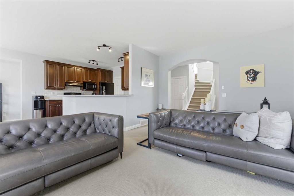 Tucked into the sought-after community of Glen Eagles Summit, this inviting home offers the perfect blend of comfort, space, and everyday functionality in a setting known for its welcoming atmosphere and scenic surroundings. A generous front entry sets the tone, opening into a bright and airy living room that seamlessly connects to the dining area—ideal for both casual family meals and entertaining. Large windows frame the west-facing backyard, filling the space with natural light, while the well-designed kitchen features rich cabinetry, ample workspace, and a practical layout. A walk-through pantry leads to the main floor laundry and a convenient mudroom with direct access to the garage, keeping daily routines organized and efficient. Upstairs, the home continues to impress with a spacious bonus room highlighted by oversized windows, creating a warm and comfortable retreat for relaxing or gathering. Just beyond, two well-proportioned bedrooms are perfectly suited for growing families or guests, connected by a thoughtfully designed Jack and Jill bathroom offering generous counter space along with a separate tub and toilet area for added privacy. The primary suite is positioned as its own private escape, complete with a walk-in closet and a well-appointed ensuite featuring a deep soaker tub, separate walk-in shower, and a layout designed for both comfort and ease. Downstairs, the basement is unspoiled, presenting a great opportunity to customize and expand your living space, with a completed staircase and rough-in plumbing already in place for a future bathroom. Step outside to enjoy a west-facing backyard that backs onto pathways, with direct gate access leading to picturesque walking trails throughout the community. A nearby playground adds to the appeal, making this an ideal setting for families. With its balance of indoor comfort and outdoor lifestyle, this home offers exceptional value in one of Cochrane’s most desirable neighbourhoods.