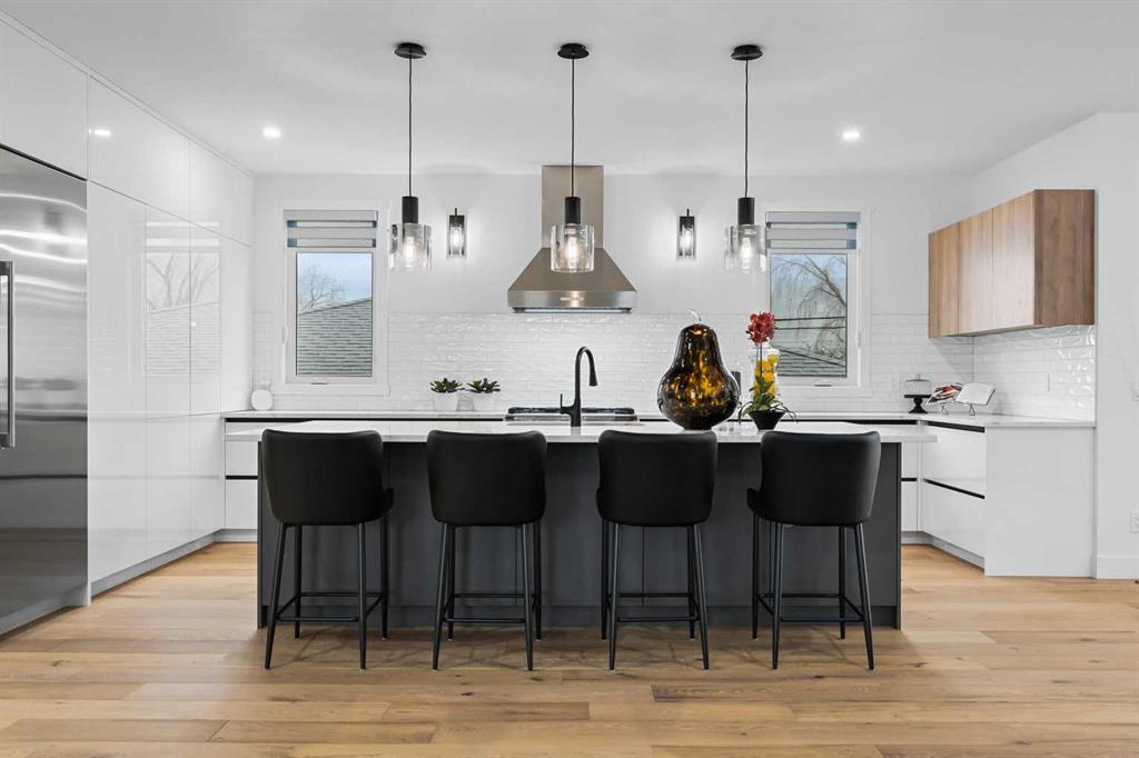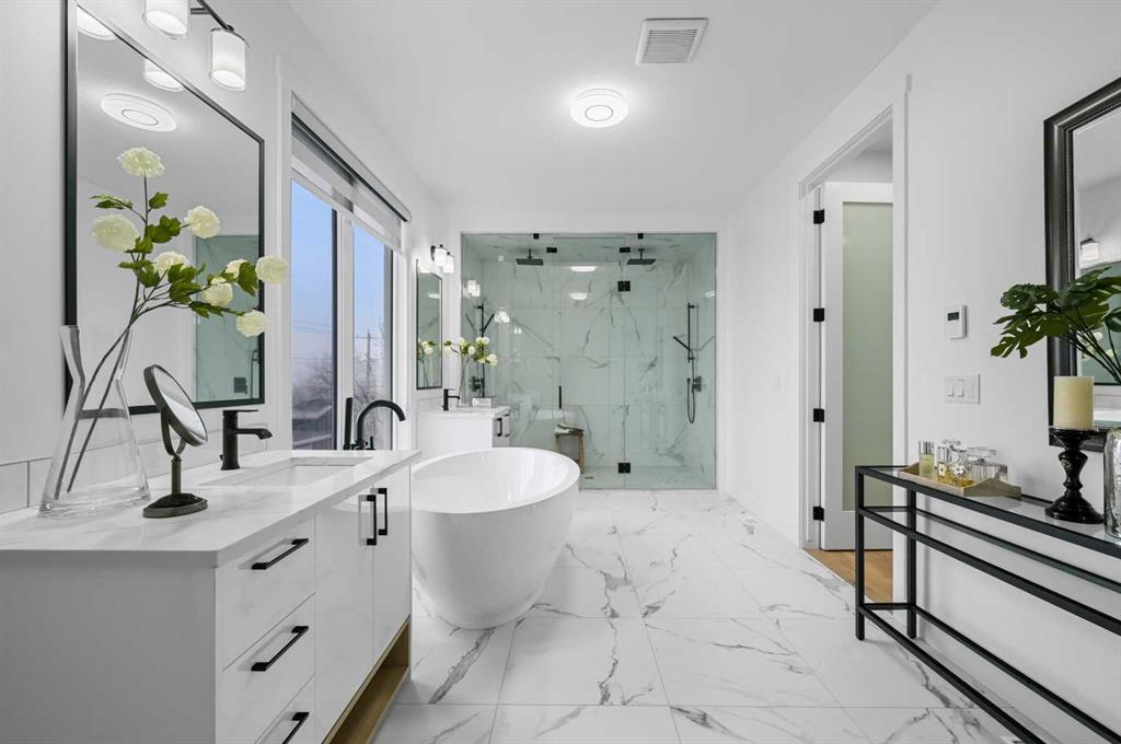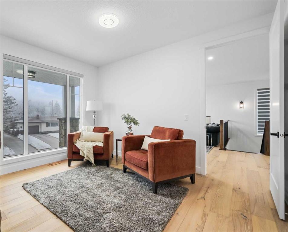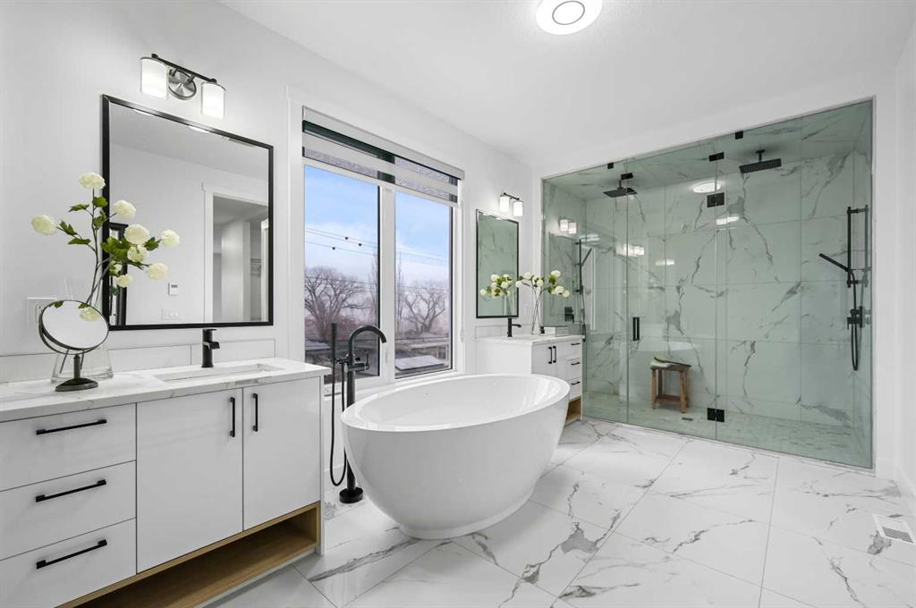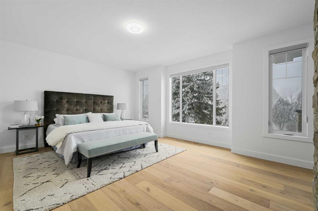 Welcome to this beautiful executive custom built home in the up and coming community of Meadowlark Park. The home offers 5 bedrooms, 4 bathrooms, and over 6000 sqft on all 3 levels. The home has been built with convenience in mind with various custom upgrades. Walking into the property, you are greeted with an open concept space with light pouring in from every window. Beautiful engineered white oak floors flow throughout making for a seamless transition into every room. The large entryway opens up to the entire first floor making for a very bright and open floor plan. The dining area and living area are perfect for hosting and entertaining friends and family. A beautiful stone packed gas fireplace makes for a warm and cozy feel over the entire living room. Just off of the living room are sliding glass doors that lead out to a large deck with access to the backyard and triple detached garage. The kitchen comes equipped with top of the line stainless steel appliances, a large breakfast bar, designer tile backsplash and convenient built in features. Just off of the kitchen is a two piece powder room and a convenient mudroom with built in features with doors to another deck granting access to the garage and backyard. The second level features a large great room as well as a main 4 piece bathroom and laundry room with a sink. The primary bedroom is perfect for unwinding after a long day. The double sided gas fireplace makes for a comfortable, serene setting. Heading into the 5 piece spa like ensuite, you’ll first come across his and hers walk in closets with built-in’s. The ensuite consists of many features such as a large soaker tub, two rain shower heads, and double vanities. Two other good sized bedrooms can be found on the second level. The walk-up basement is fully finished with a wet bar as well as in floor heating throughout. The basement has a separate entrance from the backyard which has a mudroom with built in features for added convenience. The basement has two good sized bedrooms and a 4 piece main bathroom with rough in for a washer and dryer. This home is located within walking distance to schools, transportation, and amenities. Must see to appreciate the detail of this custom built home. Exceptional value!Â