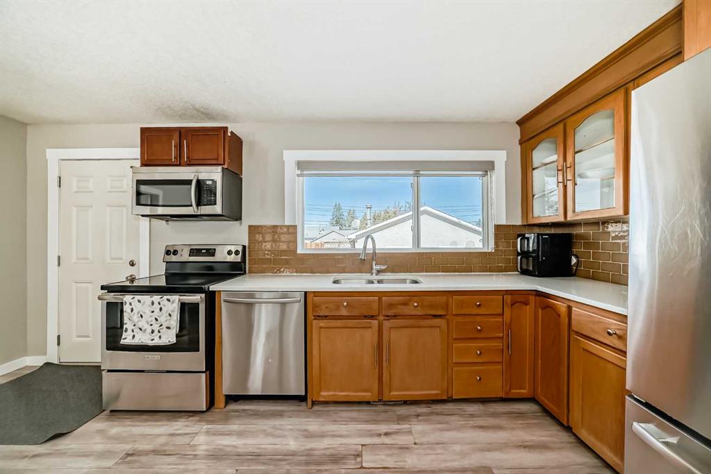This bungalow features a bright, functional layout with a modern kitchen equipped with stainless steel appliances, spacious living and dining areas, three comfortable bedrooms, and a convenient laundry room for added ease and practicality.