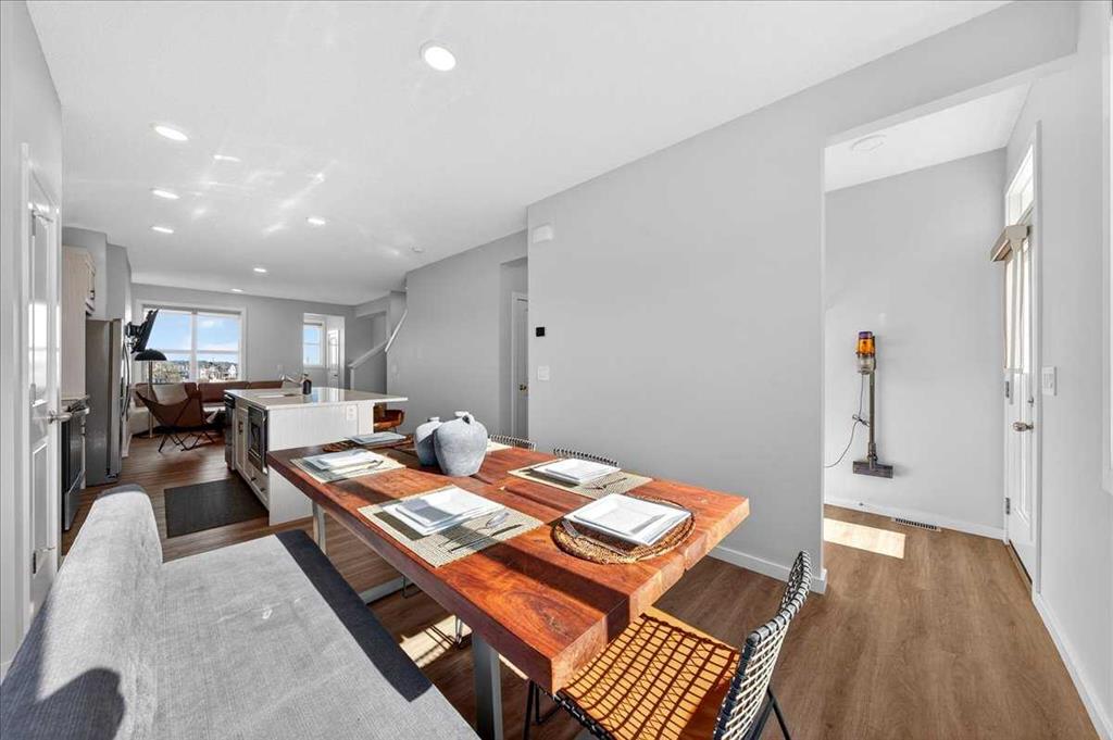 As an end unit, the extra windows make a noticeable difference. Natural light pours in throughout the day, especially with the sunny south backyard exposure. The main floor feels bright and open, offering comfortable living and dining spaces that work beautifully for everyday family life and weekend hosting alike.