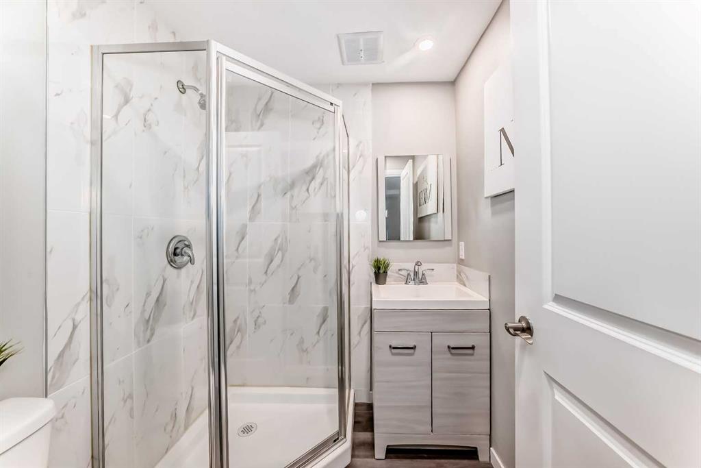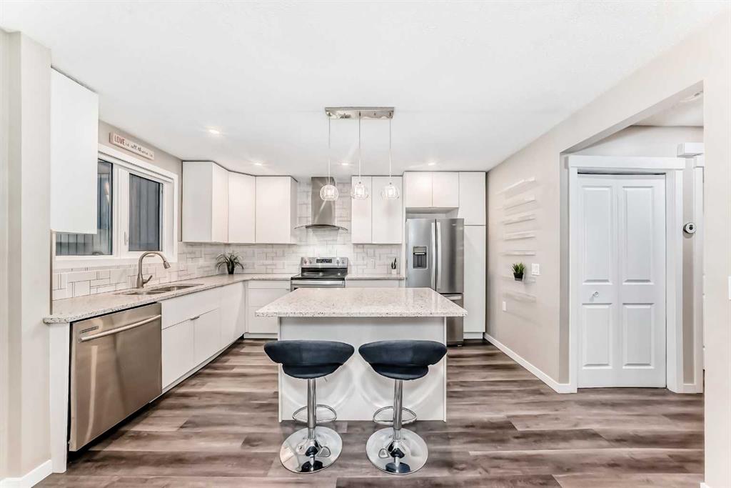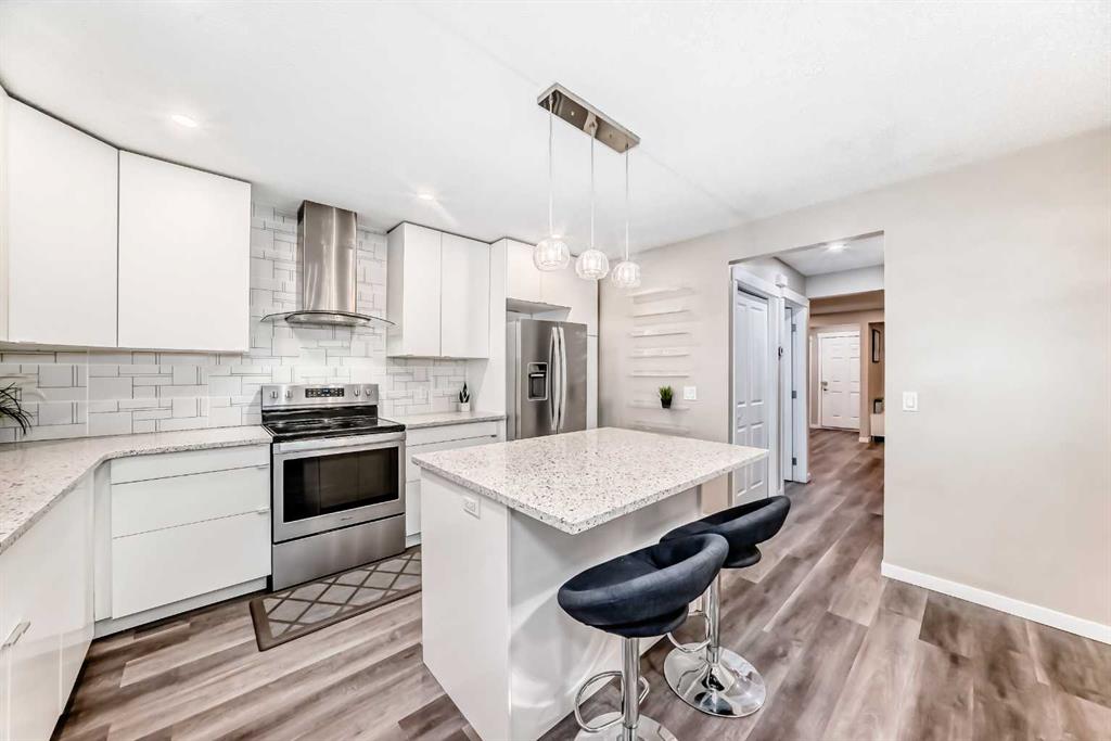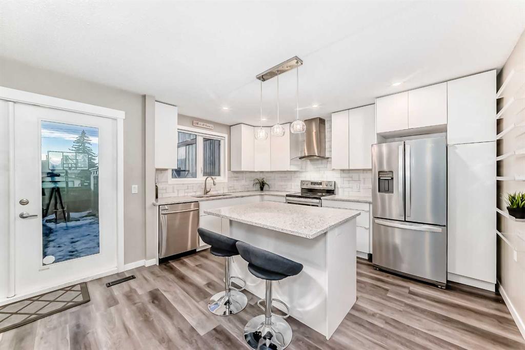 Sparkling clean & move in ready, is this extensively RENOVATED 3 bedroom & den/2.5 bathroom with FULLY DEVELOPED basement plus a private/fenced South & West backyard. Over 1900 sq ft of floor to ceiling cutting edge updates in neutral colours. Updated: Kitchen, Bathrooms, Windows, Furnace, Flooring, Baseboards, Trim, Doors, Light Fixtures, Appliances & More. Spacious open concept kitchen with Quartz topped island. Large master bedroom with double closet. 17’ x 16’ lower rec room with wet bar. Separate laundry. The list goes on. This home is an interior unit with a back lane so no road noise from major thoroughfares. Act Now … to book your viewing.