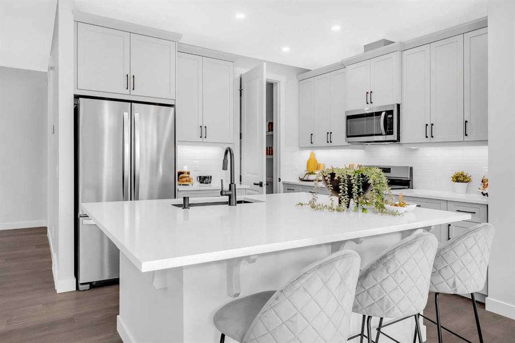 Welcome to the AMBELTON, where you’ll get the benefits of living in a well-established community. The location is perfect, as you’re surrounded by great amenities such as shopping, entertainment, dining, and recreation. This home is, with 6 bedrooms, 4 bathrooms; 3200 sq ft of living space with elegant finishing, upgrades, and side entrance to the FINISHED 2 BEDROOM LEGAL SUITE By builder (Trico). When you enter the house, you will open concept modern and smart kitchen features modern cabinetry, quartz countertops, a high-end appliance package with gas stove and Refrigerator, Huge PANTRY with easy access to the garage and mudroom for your convenience. The spacious living room is highlighted by fireplace. This house has Huge Big windows illuminates the 9”FT main floor with natural light. The main floor also has a BEDROOM WITH FULL WAHSROOM with big window; Staircase with beautiful WOODEN railing which leads to the spacious bonus room. With total 4 spacious bedrooms, laundry area. Huge primary bedroom that comes with 5-piece ensuite is spa-like, with luxurious flooring, his and her sinks, soaker tub and a large glass enclosed shower. which perfect for big family. This is very RARE OPPORTUNITY TO OWN FULLY CUSTOMISED house in very central location of NW. There is so much to love about this home This is a great place for growing families with a network of walking paths and PARK. With easy access to major roads like Deerfoot and Stoney, you’ll be well connected to anywhere you want to go.