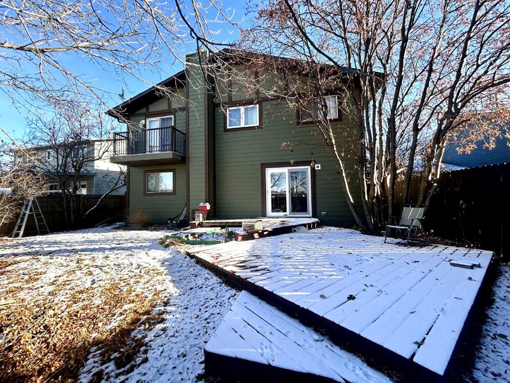 Exceptional location for families in the heart of Beddington Heights! This beautiful 4-level split offers over 2,300 sq.ft. of living space and is perfectly situated on a quiet cul-de-sac. The home features 4 bedrooms plus 2 additional flex rooms currently used as bedrooms, along with 3.5 bathrooms. The spacious, open-concept main floor is ideal for entertaining, featuring laminate flooring throughout, a formal dining room, and a large family room with a cozy fireplace. From here, step out onto the expansive deck—perfect for BBQs and outdoor dining. The upper level offers 3 bedrooms, including a generous primary bedroom with a 3pc ensuite and a private balcony overlooking the backyard, plus an updated 5pc main bathroom. The lower level includes another bedroom with walk-in closets, while the basement provides two versatile flex rooms and a 3pc bathroom—ideal for guests, home office, or hobby spaces. Enjoy outdoor living in the sunny, private backyard, perfect for gardening, play, or relaxation. Prime convenience: Walking distance to daycare, parks, schools, bus stops, and shopping. Easy access to Nose Hill Park, Beddington Heights Shopping Centre, restaurants, the airport, and Deerfoot Trail.