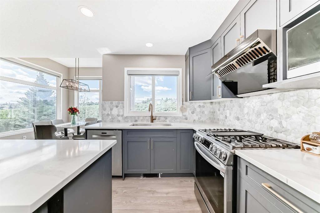 Rare!!! the beautiful renovated home in Edgemont with rare view of the RAVINE! this beautifully maintained home features newer flooring throughout the main floor,offering a bright, open and spacious layout. A dedicated den on the main floor provides the perfect space for working from home. massive windows in living room, kitchen, and dinning area, filled with natural light, let you enjoy the ravine. Renovated kitchen with stylish quartz countertops, newer gas stove. Step out from the dinning area onto the deck and take in the stunning views of the ravine. curved staircase to the second level, you will find a spacious primary bedroom with a generously size ensuite, along with two additional bedrooms, each offering excellent space and comfort. the fully developed walkout basement adds valuable living space and flexibility for your family’s needs. South-facing backyard is perfect for relaxing.washer/dryer 2024, gas stove 2024, hot water tank 2024, roof 2025