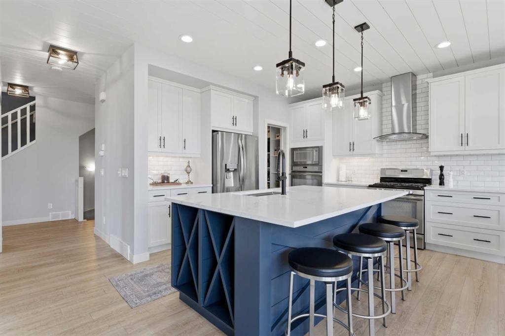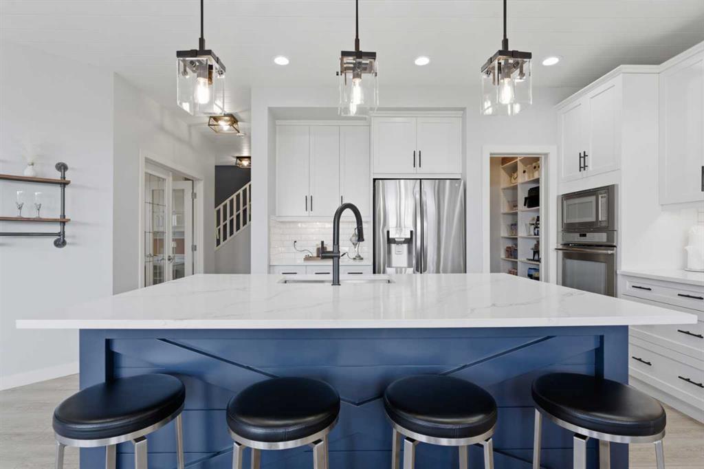 This spectacular property has it all! Incredible location, enormous pie lot, and exquisite finishes throughout. This is a one-of-a-kind home located in the highly desirable community of Mahogany. Tucked onto a quiet pie-shaped lot of over 7,500 sq ft, this property offers a level of space and privacy that sets it apart. The backyard is fully built out to be used and enjoyed — composite deck, stone patio, pergola, hot tub area, a cozy firepit space, and still plenty of room for kids and pets to play! There’s a large gravel RV pad off the paved alley, plus an attractive storage shed to keep everything organized. You also have a walking path just behind the home, making it easy to get to the lake, ponds, dog park, or shopping centre. Inside, the home opens into a bright, elegant space where every detail has been carefully considered. The kitchen is a true centrepiece, finished with quartz countertops, extended cabinetry, and a full stainless steel appliance package including a gas range, wall oven, and built-in microwave. The oversized island, complete with a built-in wine rack, anchors the space and transitions seamlessly into the dining area and living room. Here you’ll find a beautiful custom fireplace, gorgeous shiplap ceiling throughout, and extensive built-ins creating a polished, high-end vibe, while still feeling warm and inviting. The main floor continues with a fully enclosed office featuring dual built-in workstations, creating a clean and functional workspace. You’ll also love the custom mudroom locker and storage area, which leads directly into the spacious walk-through pantry! Upstairs, the primary suite is a true retreat. Vaulted ceilings add volume and natural light, while the expansive walk-in closet connects directly to the laundry room – so convenient! The ensuite is beautifully finished, featuring dual vanities with ample counter space, a freestanding soaker tub, an oversized tiled shower, and a private water closet. The bright, central bonus room is perfect for lounging after work, or a place for kids to play and enjoy. The 2 additional bedrooms are both generous in size and complete with walk-in closets. The fully developed basement continues the same level of finish, offering two large bedrooms, a full bathroom with heated tile flooring, and a dedicated media room with projector and screen – an ideal space for movie nights or relaxing at the end of the day. Living in Mahogany means more than just owning a beautiful home. It is access to Calgary’s premier lake lifestyle – private beaches, year-round recreation, extensive pathways, top-rated schools, and a vibrant urban village with restaurants, cafĂ©s, and everyday amenities just minutes away. It’s a community people move into and stay in, and homes like this, on lots like this, rarely come available. Don’t miss out on this one – book your showing today!