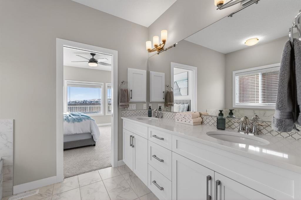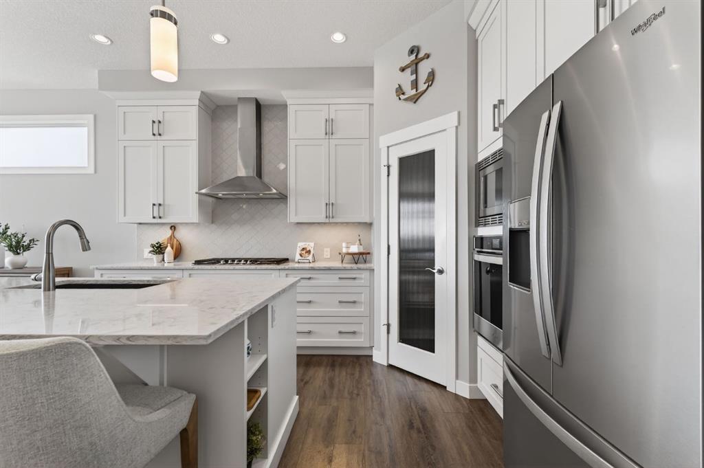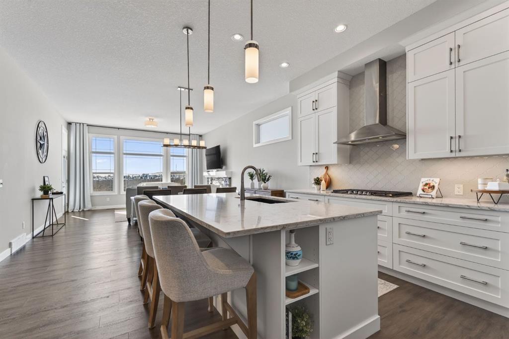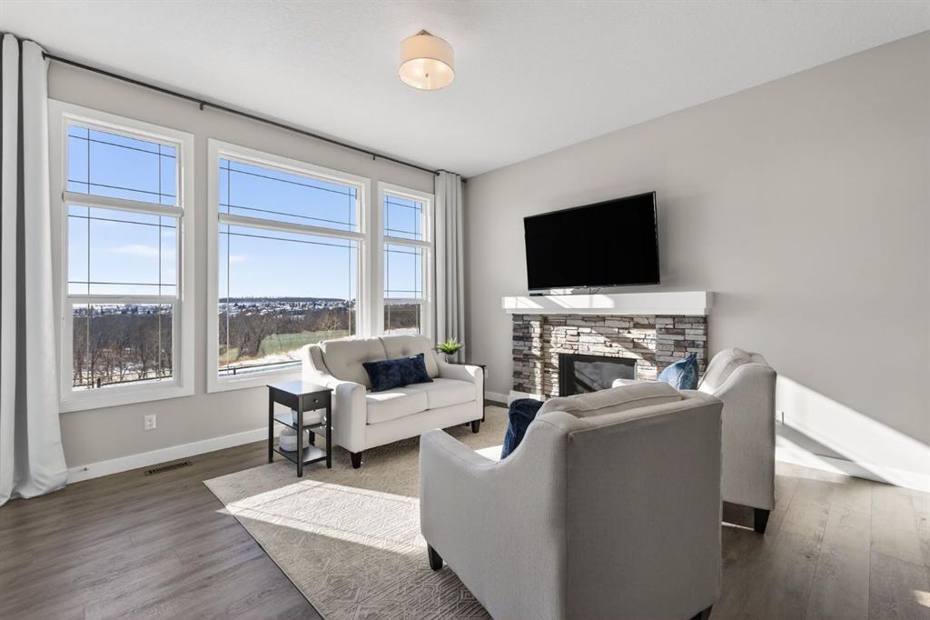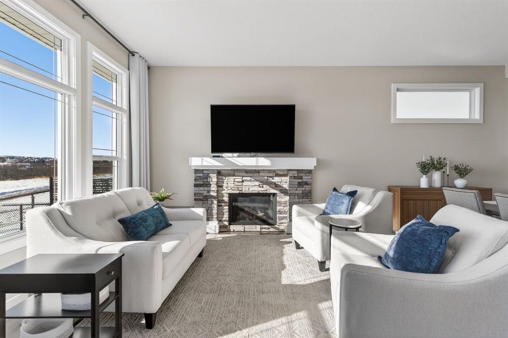 OPEN HOUSE SATURDAY MARCH 21ST 1PM-3PM AND SUNDAY MARCH 22ND 2PM-4PM. Welcome to this beautifully maintained bungalow located in the desirable community of Mountainview in Okotoks, perfectly positioned on a quiet street and backing onto scenic green space. Offering a rare combination of style, functionality, and breathtaking views, this home is ideal for those seeking both comfort and elevated everyday living. From the moment you arrive, you’ll appreciate the exceptional curb appeal, ample parking, and double attached garage. Inside, the bright and open-concept main floor is designed to impress, featuring large windows that flood the space with natural light and showcase the stunning ridge views behind the home. The heart of the home is the thoughtfully designed kitchen, complete with a large central island, quartz countertops, stainless steel appliances, and a convenient corner pantry. The seamless flow into the separate dining area and spacious living room makes this layout perfect for both entertaining and everyday living. The cozy gas fireplace anchors the living room, creating a warm and inviting atmosphere year-round. The main level also offers the convenience of laundry and a dedicated office—perfect for working from home or creating a quiet, flexible space to suit your needs. The primary bedroom is a true retreat, featuring a generous walk-in closet and a luxurious 5-piece ensuite with dual vanities, a soaking tub, and a separate stand-up shower. Downstairs, the fully developed basement expands your living space with two large recreation areas, ideal for a media room, games area, or home gym. Two additional bedrooms—one with a walk-in closet—and a full 4-piece bathroom provide plenty of room for family or guests. Step outside to the beautifully designed outdoor living space, perfectly positioned to take in the incredible views. Whether you’re hosting summer gatherings or enjoying quiet evenings, this backyard offers the perfect blend of privacy and connection to nature. Located in the sought-after Mountainview community, this home offers easy access to walking paths, parks, schools, and all the amenities Okotoks has to offer—while still providing a peaceful, scenic setting. This is a rare opportunity to own a move-in ready bungalow with a fully developed basement, stunning views, and exceptional indoor-outdoor living.