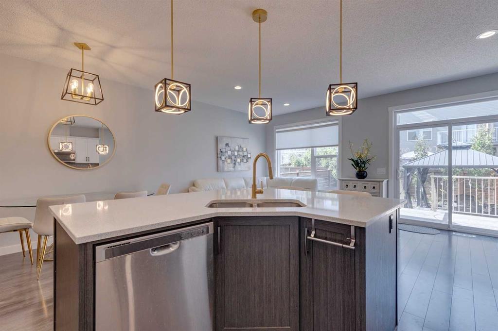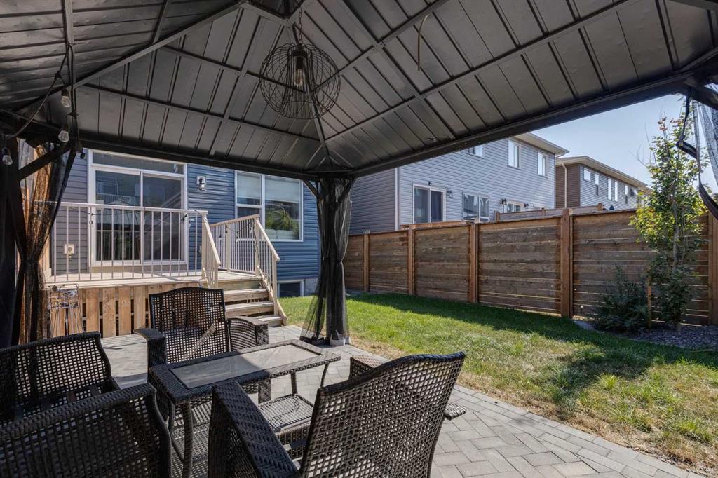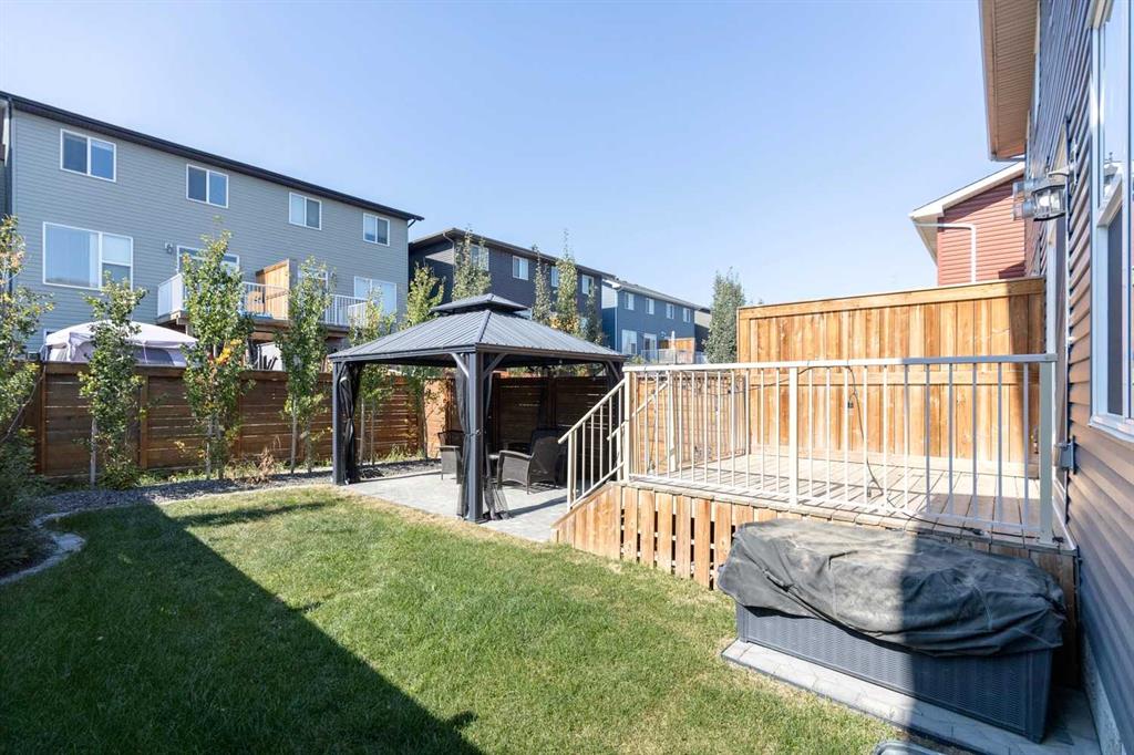 Welcome to 55 Sage Bluff Heights NW, a thoughtfully designed semi-detached home quietly nestled on a desirable street in the heart of Sage Hill. Enter directly from the front-attached garage into a bright, open-concept main floor that’s perfectly suited for both daily living and entertaining. A defined dining area leads seamlessly into the spacious kitchen, featuring a large central island, ample cabinetry and counter space, and a convenient pantry. The inviting living room is anchored by a cozy fireplace and opens onto a private backyard retreat, complete with an elevated deck and a lower brick patio with gazebo—an ideal setting for relaxing summer evenings.