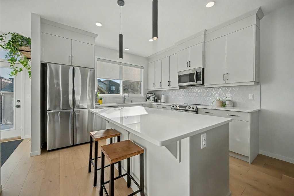 BETTER THAN NEW!! This bright, open and delightful home features designer colors and finishings and has a newly developed basement with Brand new cozy spa bath with Steam shower, heated floors, and a Large wet bar with mini fridge in the basement level second living room. The main floor features a fully equipped kitchen with white cabinets, quartz countertops, and sleek stainless appliances. Motorized blinds are also included in this home. Fully landscaped and fenced makes it ideal for summer fun and safe for pets! Location is perfect for outdoor enthusiasts as you are close to to the river and fish creek pathways. One of the best homes on one of the best neighborhoods Calgary has to offer!! The rear double oversized garage features a shop area, TONS OF STORAGE, and a safe indoor parking for your vehicles. THIS HOME FEATURES A TOTAL OF ALMOST 2000 SQUARE FEET OF INDOOR LIVING SPACE. INDULGE YOURSELF, BUY THE PERFECT SIZED HOME AND INDULGE YOURSELF IN LUXURY!