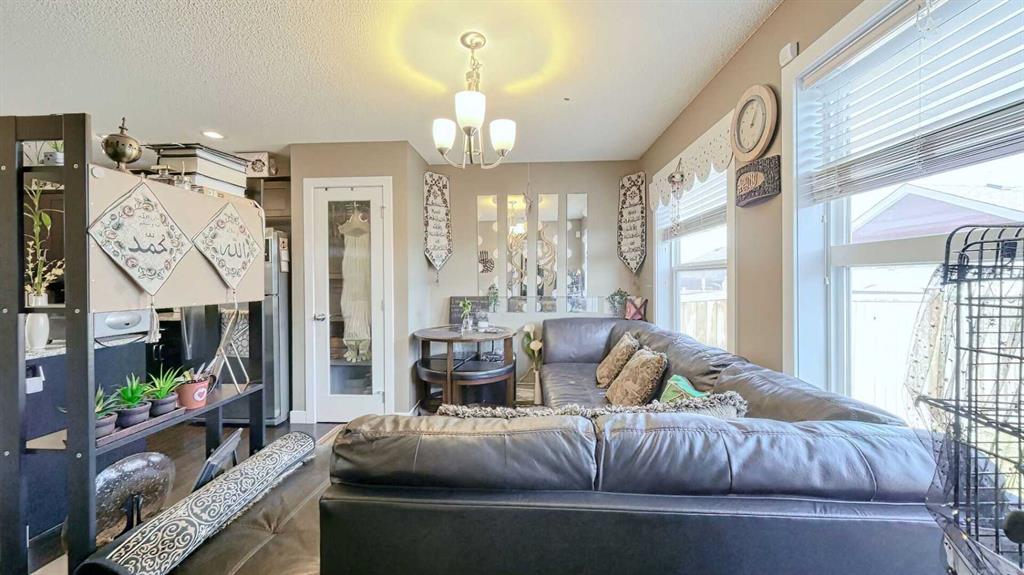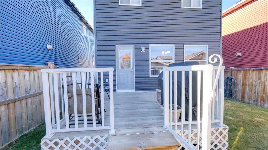 Welcome to this very desirable and family oriented community of Evanston. Here is your chance to own a beautiful, well kept home, offering 3 bedrooms, 2 full and 1, 2 piece bathroom and a double detached garage. Large front porch welcomes you onto this home. Warm Real hardwood floor through out the main level. A spacious Living room with big windows, leads you into heart of the home – the kitchen. This kitchen is ideal, – large island with a breakfast bar, granite countertop, lots of dark contrast cabinets that standout against the beautiful granite countertops, pantry, stainless steel appliances. Large dining room for your family size dinners, Classy railings on the staircase leading up to the upper floor – A large primary bedroom with a 4 piece En-suite bathroom and a walk-in closet, two more bedrooms and a 4 piece bathroom. The lower level is unfinished, has 2 large windows, Laundry and lots of storage space. A double detached garage that you will truly appreciate in the cold Calgary winters. Big Fenced backyard. Close to Parks, Schools, Major Shopping, Bus routes, many amenities and Major routes.. This home has a lot to offer that you will enjoy in your new Home. Excellent value in an great community.
