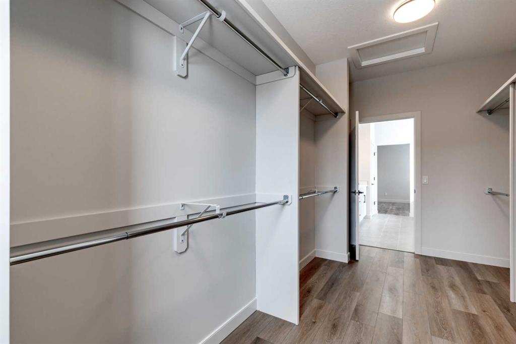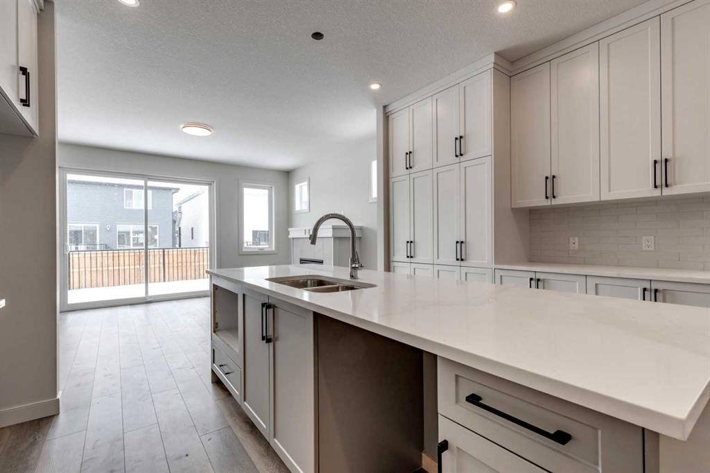 CUSTOM Bungalow living in a family friendly and exciting Rivercrest of Cochrane Community! This New build has the possibility to welcome you home near the end of April 2026. Bungalow living gives you the freedom that comes with main-floor living along with the extra space of a fully developed lower level. This near end of construction NEW Janssen Home 3 Bedroom with 2.5 bath offers just over 2,100 sq.ft. of total developed living space on two levels; designed with numerous upgrades for the discerning buyer. Open concept main-floor features 9’ ceilings and a beautiful vaulted ceiling in living room, Luxury Vinyl plank, tile flooring and carpet covered stairs going down. From front entrance walk up three steps right into the spacious dining area that leads into a Chef’s kitchen with full-height custom cabinets finished with crown mouldings, soft close doors/drawers & full extension glides, quartz counters with undermount sink, tiled backsplash, oversized flush island with overhang, stainless steel appliances – easy access microwave in island, gas range, chimney hoodfan w/full tile to ceiling backsplash, refrigerator and dishwasher. After dinner walk over to your spacious vaulted ceiling living room with gas fireplace then walk through a beautiful 8′ patio door to huge 12’ x 14’ back deck overlooking yard. Photos do not show vaulted ceiling but is a must see! Generous main-floor primary bedroom complete with LARGE walk-in closet, 5-pce ensuite, quartz counter with dual undermount sinks, taller vanity with soft close doors and full extension drawers, 5’x3’ tiled walk-in curbless shower with bench, soaker tub and private toilet room. Laundry room is conveniently located in primary walk in closet. Lower level offers wide-open rec-room, two generous sized bedroom’s, 4-pce bath, linen closet and plenty of space for storage. Family-owned and operated Janssen Homes has been building award-winning homes for over 60-years and is excited to complete another build with you!!! Upgraded features include: 9′ main floor ceilings and vaulted ceiling in living room with knock down Spantex, railings & metal spindles, LoE Argon slider windows, R-50 attic insulation, high-efficient furnace w/programmable thermostat & drip humidifier, HRV, 168 sq.ft. deck at back w/aluminum railing & minimal steps to grade. Warranty includes: 1 yr comprehensive, 2 yrs heating, electric, plumbing, 5 yrs building envelope water protection, 10 yrs structural. ****Photos of interior and exterior are of previous Janssen Homes Builds****