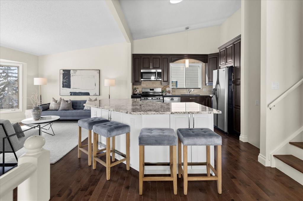 Are you looking for an updated detached home in a family friendly community? What about with 4 bedrooms, and the ability to walk out of the family room into a large backyard? Mature neighbourhoods have something a little special, whether it is the large trees or the longtime neighbours, it all just hits a little different. This 4 level split home has an open concept main floor with vaulted ceilings and lets light awash your entertaining area. The updated kitchen with granite countertops is centered around a large island with additional storage on both sides. The living room just off the kitchen has built ins and a family desk area, while opening up to bay windows and room for the kids to relax while you prepare meals. On the other side of the main level, the dining area can support a larger table and hutch/sideboard. Heading up to family quarters, the owners retreat with 3 piece ensuite is expansive and overlooks the back yard. You will also find 2 additional bedrooms and a 4 piece bathroom here. The lower full level provides a 4th bedroom and another 4 piece bathroom with laundry. Around the corner, the family room centers around a wood burning fireplace and access out to the grade level deck and yard. Summers will be spent in your curated outdoor space, having a firepit and letting the kids run off some energy. This home has plentiful storage attached to the utility room, plus the attached double garage is heated and has even more storage. This home has well-appointed updates and still offers a great value proposition to get into the detached market. Quick access out to Crowchild and John Laurie, means whether you want to go to Nose Hill Park, the mountains or head into DT as part of your work commute – you are on your way in no time. Contact your trusted agent today to book a private showing before She Gon’!