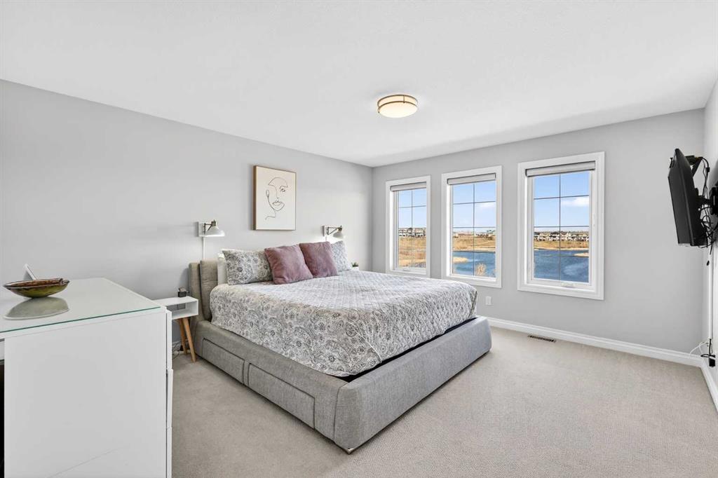 ** Please click on “Videos” for amazing video Tour ** Stunning views from this fabulous, fully developed 2 storey home, with walkout basement backing directly onto an environmentally protected pond – VERY RARE! Features include: 4 bedrooms up/5 total bedrooms, 3.5 bathrooms, almost 4000 total square feet developed, whisper quiet cul-de-sac, “Gemstone” lights front & back, power blinds, central A/C, insulated/drywalled double attached garage, water softener, Hardie Board siding, main floor office, putting green, newer pergola & fence, heated bathroom floor in basement, upper laundry (attached to primary), solar panels, kitchen under cabinet lighting, touch-less taps, large deck with BBQ gas line and much more! Location is outstanding – super quiet cul-de-sac, backing onto pond, right in the heart of Mahogany, all schools & amenities close by and very easy access to all major routes! HOA fee includes access to Mahogany Lake/Beach Club & all the amazing amenities Mahogany has to offer.
