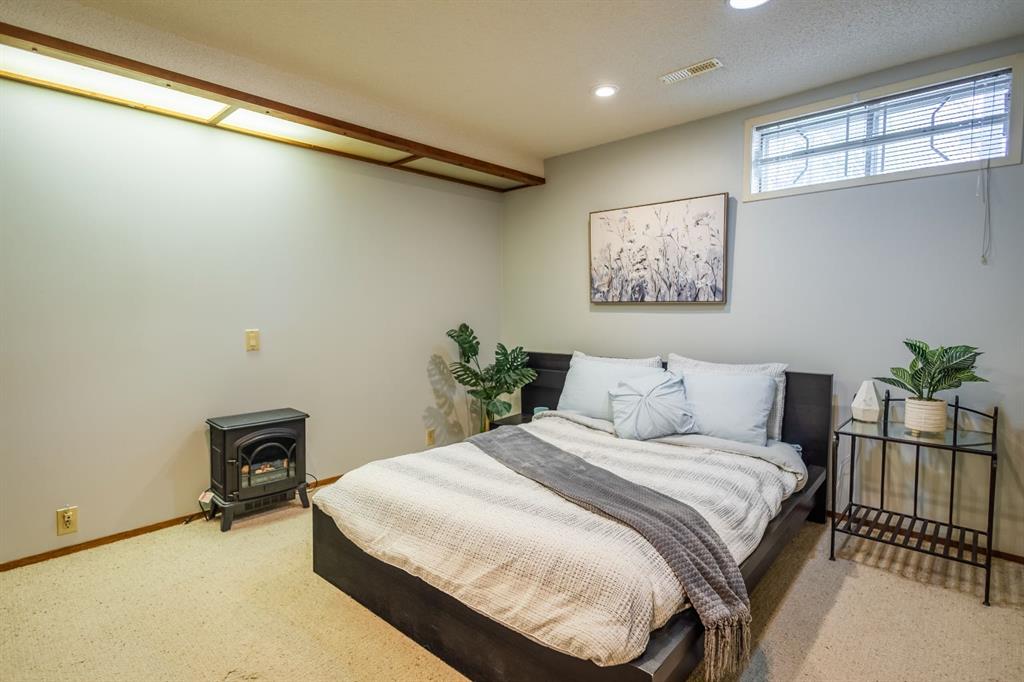 This beautifully maintained bungalow offers an exceptional location just a short walk from West Dalhousie School (K–6) and H.D. Cartwright School (7–9), with Sir Winston Churchill High School nearby. The University of Calgary and Alberta Children’s Hospital are both only a quick 10-minute drive away, making this an ideal home for families and professionals alike. Upstairs, you’ll find three spacious bedrooms, including a bright and inviting primary retreat featuring two closets and a private ensuite. Large, newer windows throughout the main level flood the home with sunshine. The main floor also boasts a formal living and dining room, along with an open-concept kitchen and family room centered around a cozy wood-burning fireplace—perfect for everyday living and entertaining. The upstairs 4-piece bathroom has a solar tube to let the sun inside. The fully developed basement adds even more versatility, offering an additional bedroom, full bathroom, generous storage space, and a relaxing sauna—ideal for unwinding during Calgary’s colder months. Outside, enjoy a sunny west-facing, fully fenced backyard with mature trees, patio and large deck creating a private setting for outdoor gatherings. The heated double detached garage adds convenience year-round. The garage features extra under ground storage. Additional highlights include newer shingles, a well-maintained furnace (with service records), and a humidifier. This is a wonderful opportunity to own a warm and inviting home in a sought-after, family-friendly community.