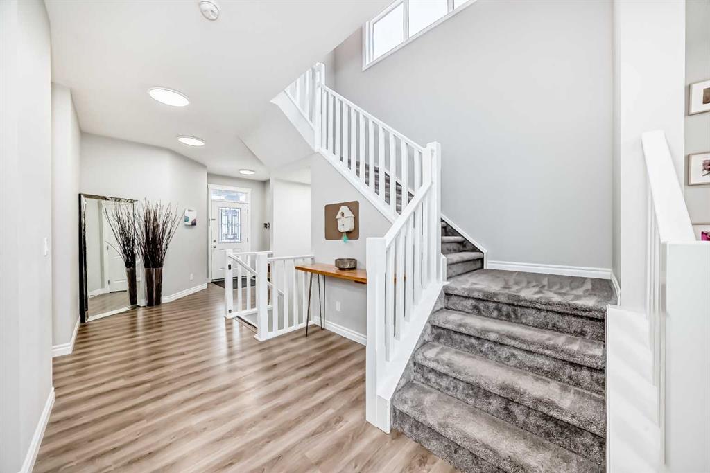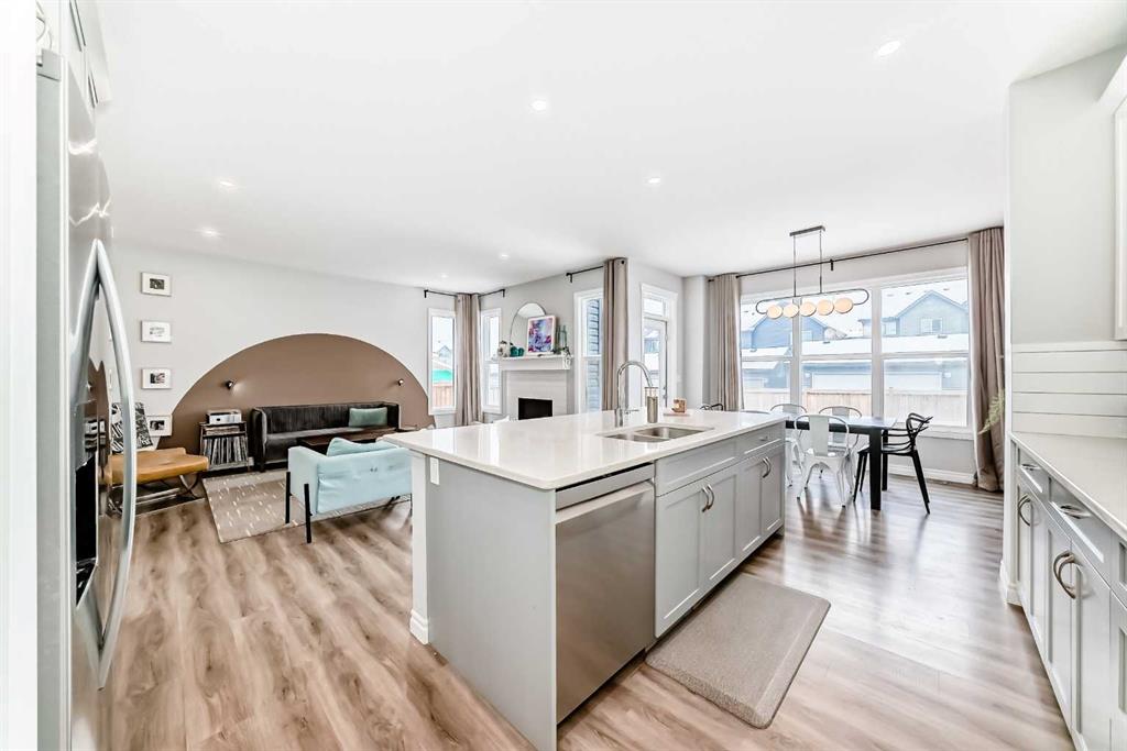 Welcome to your dream home in the vibrant and growing community of Belmont SW! This beautifully appointed 2,500 sq. ft. of total living space home offers the perfect blend of luxury, comfort, and functionality — ideal for families, professionals, and anyone looking for a well-designed space to call home. This exceptional home features a south-facing backyard, double attached garage, and air conditioning, with an open-concept main floor showcasing 9-foot ceilings, a gas fireplace, and large windows for abundant natural light; the gourmet kitchen includes a spacious island, quartz countertops, gas cooktop, built-in oven and microwave, and a walk-through pantry off the mudroom, while a main floor office provides the perfect workspace — upstairs, enjoy an oversized bonus room with 14-foot vaulted ceilings and a spa-like primary suite with double sinks, and a walk-in closet connected to the laundry room and 2 additional generous size bedrooms. The undeveloped basement with 9-foot ceilings and large windows offers a great space for the kids to play or finish to your liking. Outside, a deck with gas hook-up is perfect for entertaining and fully fenced backyard with paved back alley access, and a new roof/siding (2022) complete the package. Don’t miss this amazing opportunity! Call your favorite Realtor and book a showing today!