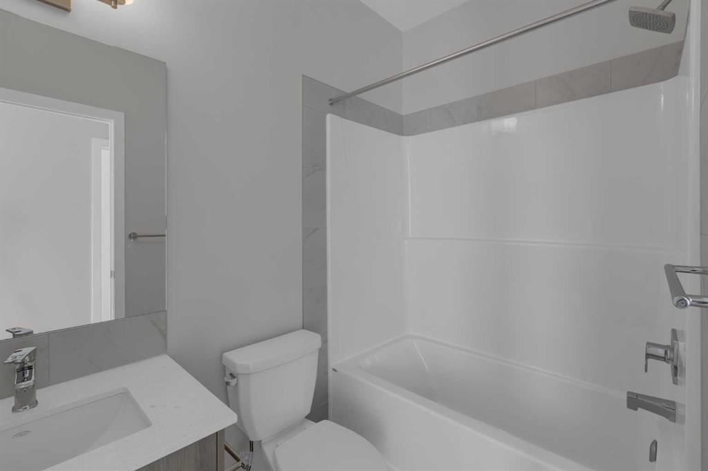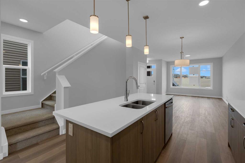 4 BEDROOMS ABOVE GRADE, WALK OUT BASEMENT that is roughed in for LEGAL 2 BEDROOM SUITE ( w/city permits and approvals). Introducing the COHEN: an amazing, BRAND NEW attached home by EXCEL HOMES offering 1735 SF above grade of upgraded luxury! Nestled in the vibrant Northwest community of Carrington. Step into a life of luxury and convenience with this stunning residence, where every detail has been meticulously crafted for comfort and style. Enjoy the benefits of living in an established neighborhood that brings a plethora of amenities right to your doorstep, along with swift access to major highways. Enjoy the local pathways, environmental reserve – central pergola & seating areas and mixed level playground w/basketball court, skate park & more.! The COHEN offers a sprawling 1735 square feet of thoughtfully designed living space, perfect for both families and entertaining. The open floor plan, complemented by neutral designer tones, creates a welcoming atmosphere that is both elegant and comfortable. The chef-quality kitchen stands as the heart of the home, equipped with an abundance of cabinets, pot/pan drawers, and upgraded stainless steel appliances. The expansive engineered stone countertops, a large island with seating, and a convenient pantry make it a dream kitchen for those who love to cook and entertain. The main floor also features versatile luxury vinyl plank flooring. Uniquely ON THE MAIN FLOOR, you’ll find a BEDROOM & FULL 4 PCE BATHROOM. Ascend to the second level where leisure meets luxury in the large central bonus room with vaulted ceilings — ideal for movie nights and family gatherings. The primary bedroom is a true retreat, boasting a walk-in closet and a spa-like ensuite with stone vanity tops. Additionally, two more generously sized bedrooms provide ample space and easy access to the main bathroom. The convenience continues with a laundry room (w/folding counter), strategically located on the same floor. The possibilities extend into the undeveloped WALKOUT basement that has separate ENTRY & ROUGH IN’S FOR 2 BEDROOM LEGAL SUITE (with city permits & approvals)… the utilities are tucked away for easy development. You’ll find a pressure treated deck w/aluminum railings accessible from your kitchen! This home includes a 20 x 20 gravel parking pad and sod to the front & backyard. Don’t miss the chance to own this never-lived-in gem with quick possession available. Experience the blend of luxury, comfort, and convenience in Livingston—welcome to your new dream home at the COHEN.
