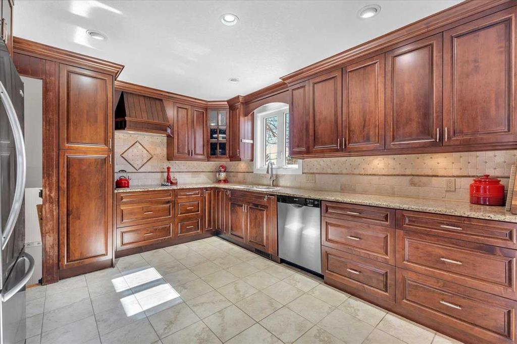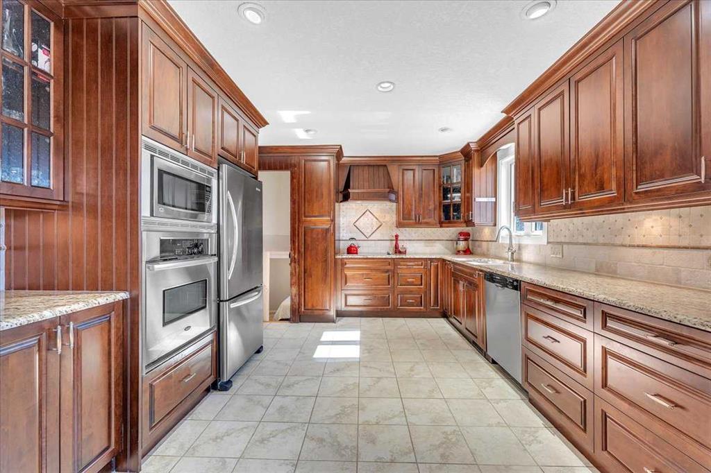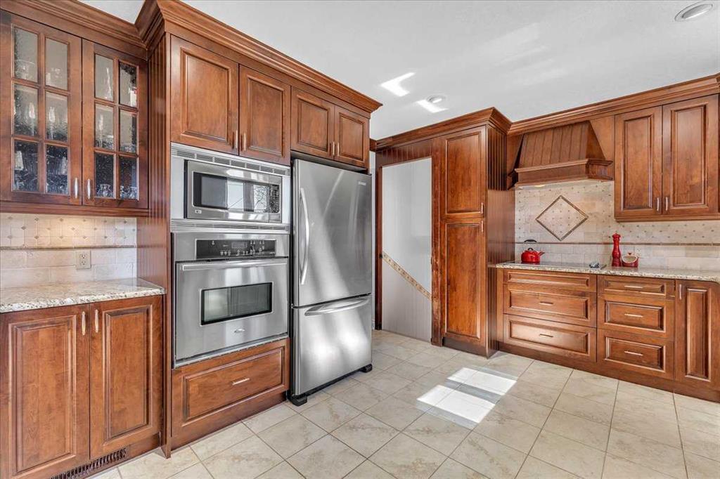 The kitchen blends classic design with thoughtful updates, featuring granite countertops, stainless steel appliances including a wall oven and Bosch dishwasher, and an abundance of cabinetry. It’s a functional, inviting space where family meals and conversations naturally come together.