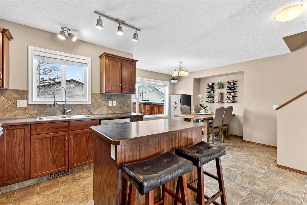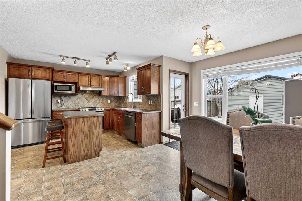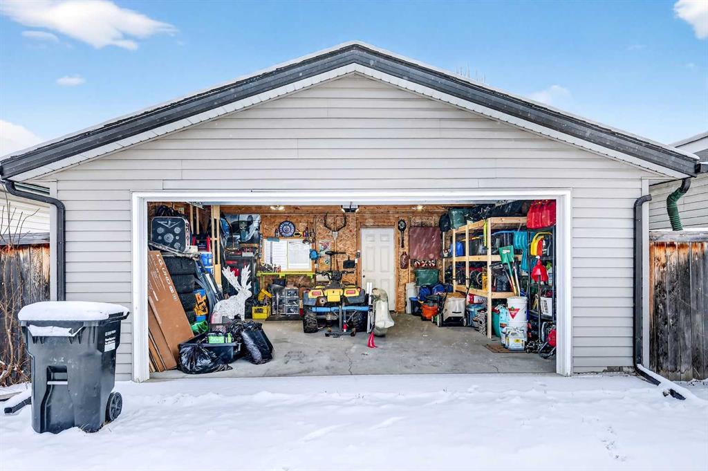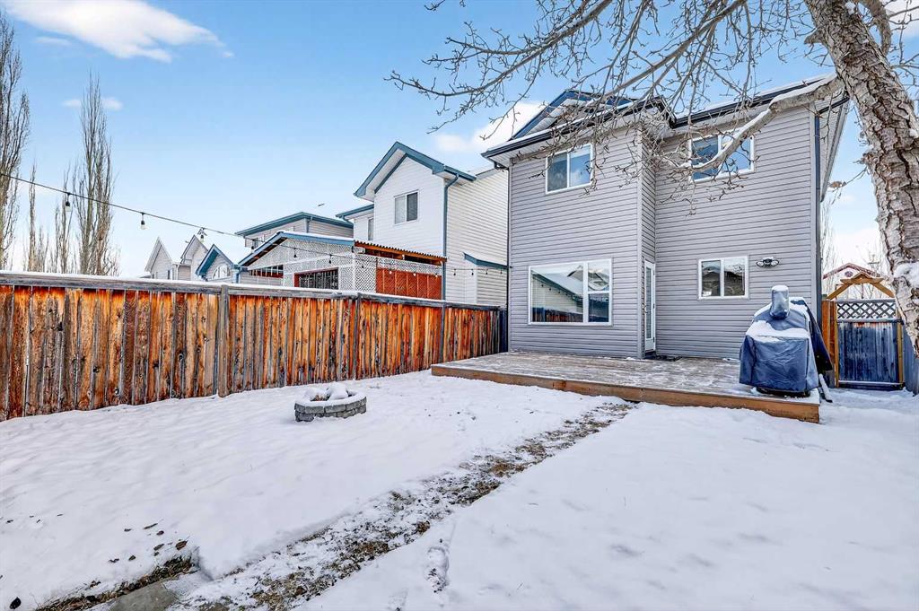 Wow!! Mr. and Mrs. Clean live here!! Welcome to this splendid two-story, three bedroom, 2.5 bath home on quiet street! This well-loved and maintained home is pristine and turn-key ready! Main floor boasts generous entry, cozy living room and functional kitchen with island, pantry and large eating space! Convenient 2pc bathroom has full vanity and custom paint application! Newer carpet and quality lino grace the main floor, the living room features a tiled corner gas fireplace and east facing windows that bathe the room daily with sunshine! The kitchen offers dark oak cabinetry, custom backsplash, new faucet, and stainless steel appliances including a newer gas range and dishwasher, both high-end. The island offers comfortable stool seating for casual meals or visiting while dinner is prepared. Large eating area includes an alcove suitable for a sideboard or cabinet, and provides access to west backyard and newer large platform deck! More windows provide even more sunshine through the day! Other upgrades include arches, wood-finished ledges, tiles to the ceiling in bathing areas and wide staircase to the upper level! The primary bedroom is king-sized and provides private access to the fantastic ensuite with window, full vanity (including drawers) and over-sized shower! The two secondary bedrooms are of generous size and share a four-piece bathroom and full vanity. The undeveloped basement is currently utilized for a work-out space & storage but offers rough-in for a future third bathroom! When imagining this future space, be reminded that the door envelope at the bottom of the staircase can be removed and is only there for fire code reasons (door between upstairs and furnace). The nicely fenced WEST facing backyard is clean and tidy with lots of room for gardening, a fire pit and recently pruned pear tree! Best of all, welcome to your excellent OVER-SIZED double garage with built-in shelving for storage! NEW ROOF (2022) INCLUDING GARAGE! Located only a block from Marshall Springs school, a 3 minute drive to Evergreen school, Stoney Trail and all amenities! A short walk or drive to FISHCREEK PARK! This home is perfect for first-time buyers, couples and young families!!
