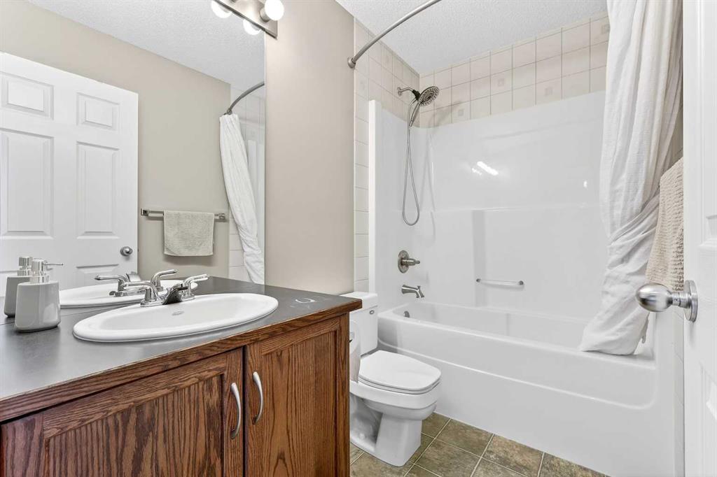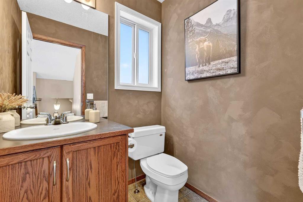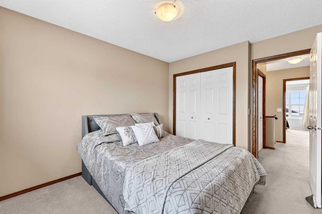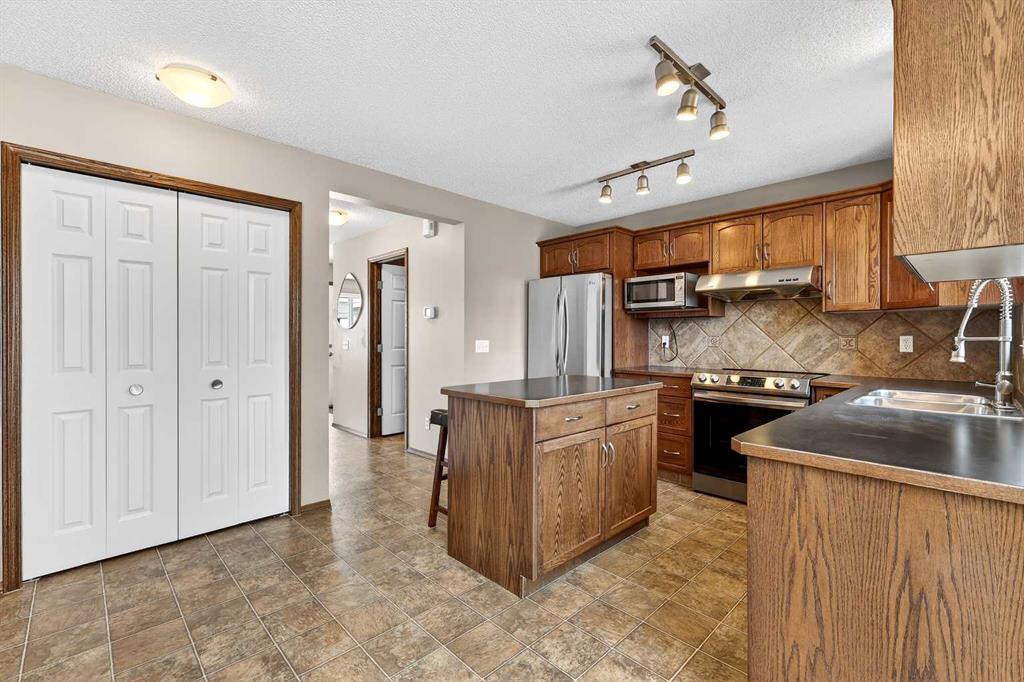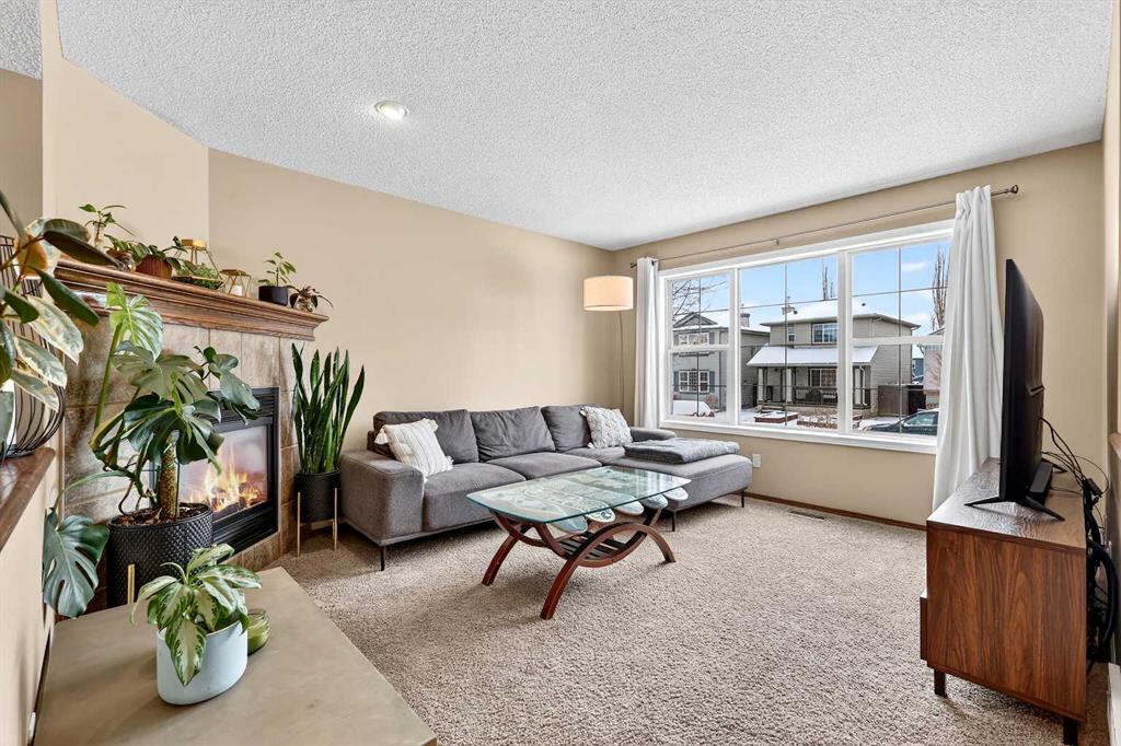 Wow!! Mr. and Mrs. Clean live here!! Welcome to this splendid two-story, three bedroom, 2.5 bath home on quiet street! This well-loved and maintained home is pristine and turn-key ready! Main floor boasts generous entry, cozy living room and functional kitchen with island, pantry and large eating space! Convenient 2pc bathroom has full vanity and custom paint application! Newer carpet and quality lino grace the main floor, the living room features a tiled corner gas fireplace and east facing windows that bathe the room daily with sunshine! The kitchen offers dark oak cabinetry, custom backsplash, new faucet, and stainless steel appliances including a newer gas range and dishwasher, both high-end. The island offers comfortable stool seating for casual meals or visiting while dinner is prepared. Large eating area includes an alcove suitable for a sideboard or cabinet, and provides access to west backyard and newer large platform deck! More windows provide even more sunshine through the day! Other upgrades include arches, wood-finished ledges, tiles to the ceiling in bathing areas and wide staircase to the upper level! The primary bedroom is king-sized and provides private access to the fantastic ensuite with window, full vanity (including drawers) and over-sized shower! The two secondary bedrooms are of generous size and share a four-piece bathroom and full vanity. The undeveloped basement is currently utilized for a work-out space & storage but offers rough-in for a future third bathroom! When imagining this future space, be reminded that the door envelope at the bottom of the staircase can be removed and is only there for fire code reasons (door between upstairs and furnace). The nicely fenced WEST facing backyard is clean and tidy with lots of room for gardening, a fire pit and recently pruned pear tree! Best of all, welcome to your excellent OVER-SIZED double garage with built-in shelving for storage! NEW ROOF (2022) INCLUDING GARAGE! Located only a block from Marshall Springs school, a 3 minute drive to Evergreen school, Stoney Trail and all amenities! A short walk or drive to FISHCREEK PARK! This home is perfect for first-time buyers, couples and young families!!