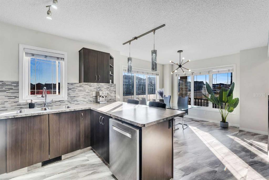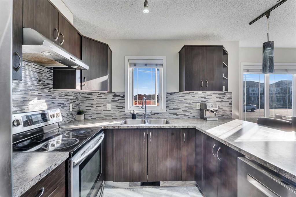 This end-unit townhouse features modern décor throughout and luxury vinyl tile flooring on the main level. The spacious living room is perfect for entertaining. The stunning kitchen includes rich cabinetry, stainless steel appliances, a peninsula with a breakfast bar, modern lighting, and is open to the dining area.