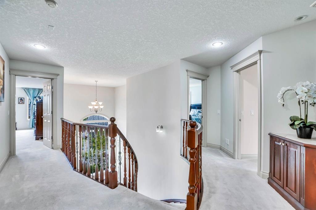 Immerse yourself in refined living in this exquisite custom-built two-story estate by California Homes. Nestled on a spacious pie-shaped lot at the peaceful end of a cul-de-sac, this remarkable home boasts numerous upgrades and multiple outdoor entertainment areas, perfect for relaxation and social gatherings. Upon entering, you’ll be greeted by a grand foyer with soaring 18-foot ceilings and detailed crown moldings, setting the stage for elegance. The gourmet chef’s kitchen, featuring a generous island and double ovens, gas range, seamlessly connects to the expansive family room, complete with custom-built-ins and a warm fireplace. Gleaming upgraded hardwood floors, a formal dining room, and a versatile office/computer room add to the home’s sophisticated charm. This luxury home is equipped with a home sprinkler system, air conditioning system, home water softener system, and automated remote-controlled blinds in the main floor. The oversized double garage and mudrooms combine practicality with style. The upper level boasts four spacious bedrooms, with a walk-in closet. The master suite features a spa-inspired ensuite with dual sinks, a 5-piece bathroom, heated floors, and more. Another 5-piece bathroom is available for the other rooms, and an upper-level laundry room with a sink and extensive cabinetry adds convenience. The fully finished basement is an entertainer’s delight, offering a recreation room, games area, additional fireplace, full wet bar, a fifth bedroom, and a full bath with heated floors. Modern touches such as built-in speakers,fireplaces, and an elegant curved staircase enhance the home’s appeal. Outside, enjoy a private backyard oasis complete with a large deck, patio, and outdoor gas barbecue, perfect for entertaining. The beautifully landscaped yard features mature trees, including organic apple trees. You can enjoy already created garden area to grow vegetables and fruits if you desire. This exceptional home offers a rare opportunity to own a stylish and functional property in one of Calgary’s most desirable Southwest neighbourhoods. With its close proximity to Fish Creek Park, Golf , top-rated schools, transit, and shopping, it’s a perfect blend of style and functionality. Book your viewing today to experience the elegance and comfort of this remarkable residence!