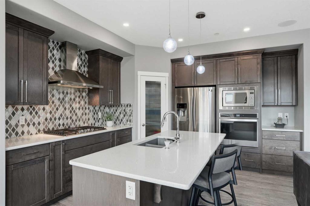 Gorgeous Family Home with Tons of Upgrades | Central AC | 36″ Wide Top Mount Gas Stove | Upgraded Hood Fan | Quartz Countertops | Full Height Cabinets | Diamond Backsplash | Kitchen Island with Barstool Seating | Main Level Bed & 3pc Bath | Plethora of Windows with Natural Light | Built-in Camera System | Built-in Sound System | Electric Fireplace | Central Vacuum System with Kitchen Toe Kick | Wide Front Entrance Stairwell | 3 Spacious Upper Level Bedrooms | Comfortable Family Room | Grand Laundry Room | 9 Ft Ceilings Main Level & Basement | Separate Entry to Basement | Finished Basement | Basement Sunshine Window | Wet Bar | Gym | Studio | Beautiful Backyard | Expansive Duradek with Access to Lawn | Landscaped with Exposed Concrete Patio | Great Privacy with Tall Aspen Trees & Perineal Plants . Welcome to your stunning 2-storey family home boasting 2,944 SqFt of developed living space throughout the main, upper & basement levels. Full of upgrades, this home is one you won’t want to miss! The front door opens to a wide foyer with views of the open to below ceiling to the second level. The layout is incredible as its both open and functional for a large family. The open concept living kitchen, dining and living rooms make this the premier home for entertaining friends. The kitchen is outfitted with full height cabinets, a 36″ top mount gas stove, upgraded range hood fan, built-in stainless steel appliances, sparkling quartz countertops and a kitchen island with barstool seating. The diamond design backsplash adds character tot this space you don’t see every day! The dining & living rooms are framed with large windows that fill the space with natural light. The door off the dining room leads to the grandiose duradek where you’ll enjoy summer BBQs! The living room is centred with an electric fireplace & a TV ready wall above. The main level has a bedroom & a 3pc bath great for a large family or multigenerational living. Upstairs has 3 bedrooms & a bonus room all with plush carpet flooring. The primary bedroom is paired with a deep walk-in closet & private 5pc ensuite. The ensuite has a deep soaking tub, double vanity, walk-in shower & private washing closet. Bedrooms 2 & 3 are both a great size & share the 4pc bath with a tub/shower combo. The family room is a bonus to your comfortable living space providing you with a plush space to unwind in the evenings. The upper laundry room is larger than normal with a folding shelf & space for cabinet storage. Downstairs, the finished basement has a separate side entry giving you more than one entry access. This space has been designed for health! The rec room is currently used as a studio/gym with a wall full of mirrors that beam the natural light off of the sunshine window. A wet bar in this space is a bonus as it allows for entertainment or a juice bar to the studio! The basement has a 4pc bath & great storage. Head outside to the private backyard with mature Aspen trees & perineal plants. Hurry & book your showing today!