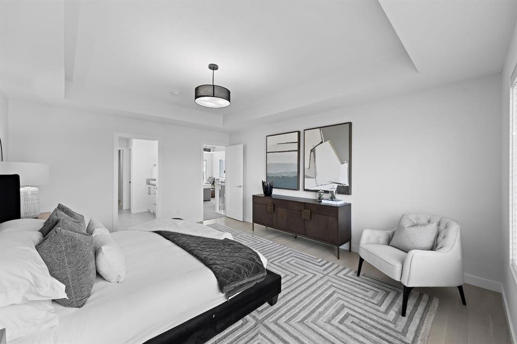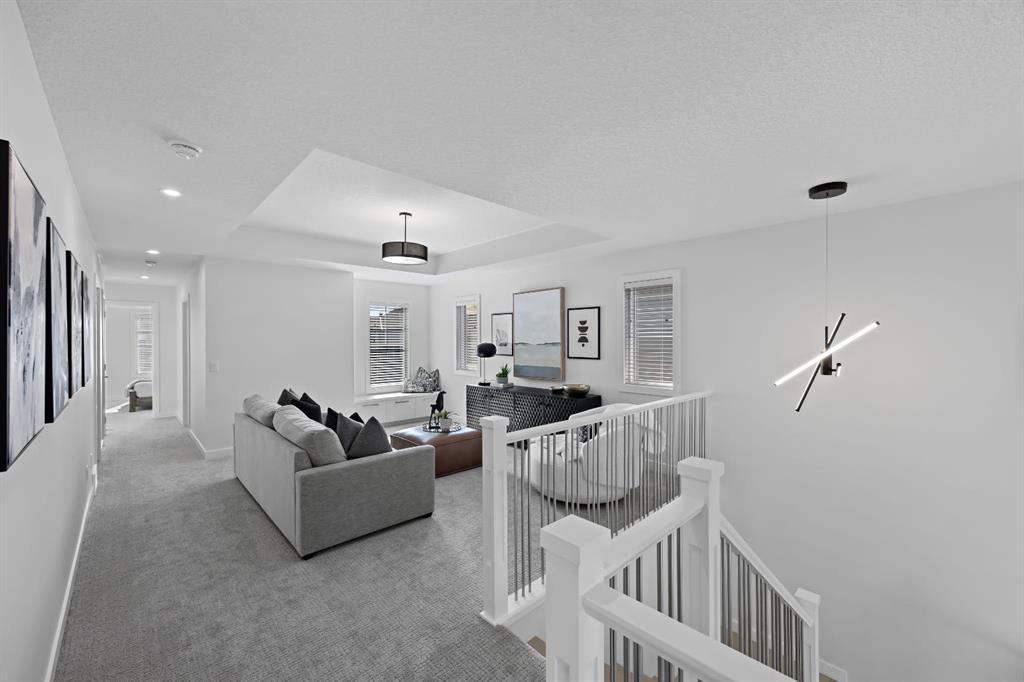 Westland Estates is where refined living meets contemporary design—expertly crafted by TRUMAN Homes. This exceptional new build showcases high-end finishes, thoughtful planning, and elevated craftsmanship, offering a sophisticated lifestyle in one of West Springs’ most desirable communities. Nestled within a private cul-de-sac enclave, this home delivers both privacy and convenience in a prime location. From the moment you step inside, the impact is immediate. The open-concept main floor is centered around a chef-inspired kitchen featuring full-height cabinetry, soft-close details, quartz countertops, a premium appliance package, and a well-designed walk-in pantry—perfect for both entertaining and everyday living. The kitchen flows seamlessly into a bright great room, where soaring two-story ceilings create an airy, expansive feel. A quartz-clad fireplace adds warmth and style, while 9-foot ceilings, wide-plank hardwood floors, a versatile main-floor den, and a chic powder room complete the space with comfort and elegance. Upstairs, the primary suite offers a private retreat with a tray ceiling, spa-like five-piece ensuite, and spacious walk-in closet. A central bonus room, two additional bedrooms, a modern four-piece bath, and upper-level laundry provide functionality for today’s busy lifestyles. The unfinished lower level—with a separate side entrance—offers endless potential for future development, whether as a recreation space, home gym, or media room. Located in the sought-after West Springs community, this home presents a rare opportunity to enjoy upscale living in a quiet, exclusive setting. Full photo gallery coming soon, including images of a similar home.
