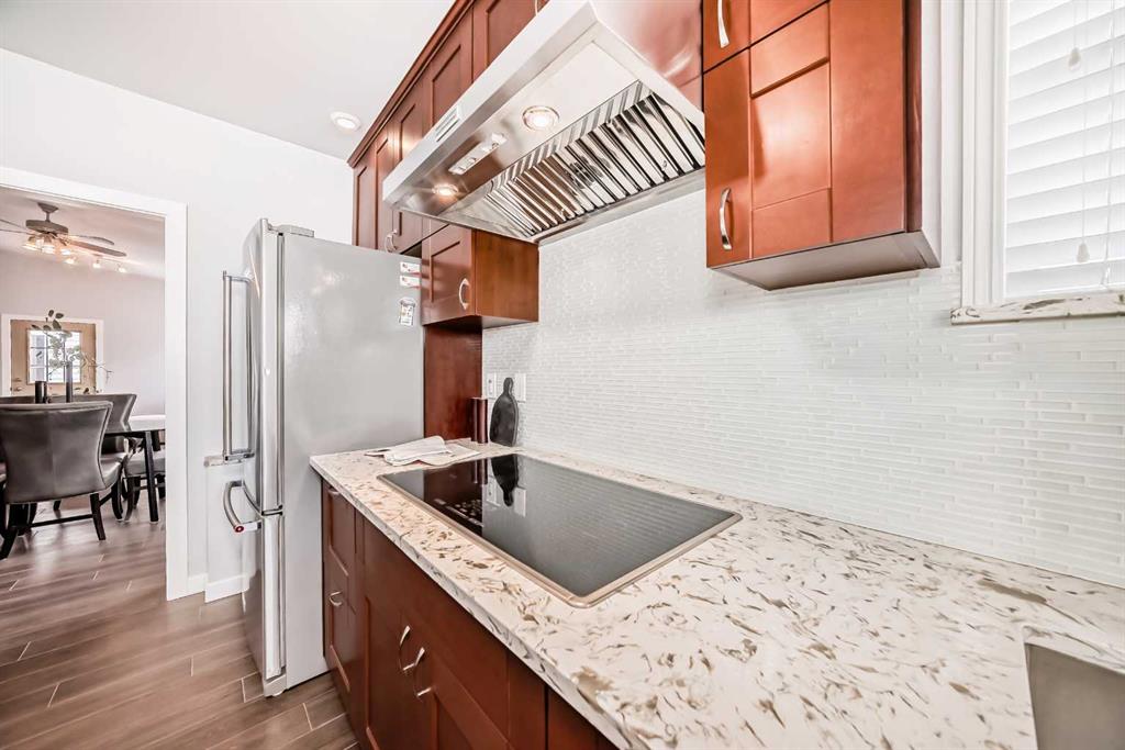 LOCATION! LOCATION! LOCATION! Welcome to this exceptional, fully renovated luxury bungalow nestled in the highly coveted, family-friendly community of Dalhousie, ideally situated near top-ranked schools, the prestigious University of Calgary, scenic parks, vibrant shopping centres, and multiple convenient transit options. This stunning 5-bedroom, 5-bathroom home offers over 2,700 square feet of thoughtfully designed, elegant living space, blending contemporary aesthetics with premium, high-quality finishes throughout. The house is equipped with high-quality in-floor heating, offering exceptional, consistent warmth and cozy comfort during Canada’s long, cold winters, while adding an elegant touch of luxury to your everyday living experience.The open-concept layout boasts a bright and spacious living room, a cozy and functional family area, and a gracefully connected dining room – perfect for both everyday living and stylish entertaining. The brand-new gourmet kitchen is a chef’s dream, equipped with top-of-the-line stainless steel appliances, a restaurant-grade range hood, a large 5-burner induction cooktop, luxurious marble countertops, and custom solid wood cabinetry, all combining beauty with functionality. The main floor features three sun-drenched bedrooms, including a generously sized primary suite complete with a spa-inspired ensuite bathroom featuring a soaker tub. For added convenience, the main level also offers a laundry-ready closet with rough-ins for a stackable washer and dryer, perfectly positioned near the bedrooms. The separate-entry lower level is ideal for income generation or multigenerational living, featuring a fully equipped second kitchen, two spacious ensuite bedrooms, a dedicated home office, and dual laundry setups for maximum independence and flexibility. Step outside to a beautifully landscaped, expansive backyard with a large, private deck shaded by mature trees. The deck is pre-installed with in-floor heating pipes and rough-ins for a future hot tub, creating a perfect outdoor oasis. The massive backyard offers ample room to park an RV or a small boat, making it a dream for adventure lovers. The oversized and elevated double garage provides extra clearance, making it easy to accommodate large trucks or a workshop setup. Dalhousie is a mature, vibrant community known for its excellent walkability and access to schools, public transit, parks, cafes, and shopping. With quick connections to Crowchild Trail, John Laurie Blvd, and the Dalhousie LRT station, your commute and errands are always a breeze. Whether you’re looking to upsize, relocate, or invest in a home that offers style, comfort, privacy, and incredible future potential, this rare offering must be experienced in person to fully appreciate its true value. Schedule your private viewing today! The seller has just replaced the garage roof. Please see the photos for details.