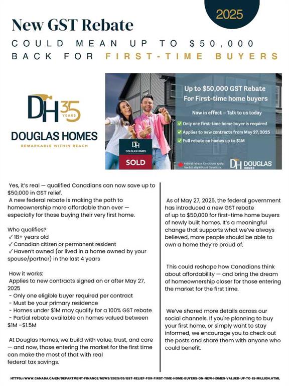 BRAND NEW HOME by Douglas Homes, Master Builder in central Greystone, short walking distance to parks, the Bow River, major shopping & interconnected pathway system. Featuring the Canberra with main floor forward enclosed Flex Room/4th Bedroom & separate side entry on an R-MX zoned home site for POTENTIAL future lower level suite. NOTE: a secondary suite would be subject to approval and permitting by the city/municipality. This gorgeous 3 bedroom, 2 & 1/2 half bath home offers 1490 sq ft of living space. This home is located on a Agate Road which provides immediate access to the Children’s Park at the end of the street and easy access interconnective pathway system, perfect for those looking for a outdoor lifestyle. Loads of Designer & upgraded features in this beautiful, open floor plan. The main floor greets you with 8′ front door, soaring 9′ ceilings, oversized windows, built-in niches & fireplace. Gleaming Hardwood floors flow through the kitchen, hall & nook adding a feeling of warmth & style. At the front of the home you’ll find an enclosed bright Flex Room (could also be a main floor bedroom) with 8’0″ French Door and storage closet for the work from home crowd. The Kitchen is completed with Quartz Countertops, two tone Kitchen Cabinets, 42″ uppers with decorative enclosed bulkhead, plenty of drawers including Pots & Pan drawers, soft close doors & drawers & new stainless steel Kitchen appliance package. Upstairs you’ll find a generous Primary Bedroom with Ensuite – Quartz Counters with double vanities, 5′ shower with Designer tiled walls & toilet in its own private doored room all completed with ceramic tile flooring & large walk-in closet accessed from the bedroom. The 2nd floor is completed by two good size additional bedrooms, main bath tub/shower combination with tiled walls, window, Quartz countertop, undermounted sink & ceramic tile flooring. You will love the convenience of 2nd Floor Laundry Room for side by side laundry completed with ceramic floor tile. This is a very popular plan, great for young families, investors or the down sizers. Spacious, Beautiful and Elegant! The perfect place for your perfect home. Call today! Photos are from prior build & are reflective of fit, finish & included features. Note: Front elevation of home & interior photos are for illustration purposes only. Actual elevation style, interior colors/finishes, & upgrades may be different than shown & the Seller is under no obligation to provide them as such. Directions: Come to the Show Home first located at 500 River Avenue. Showings only during Show Home hours & days. THIS HOME IS UNDER CONSTRUCTION