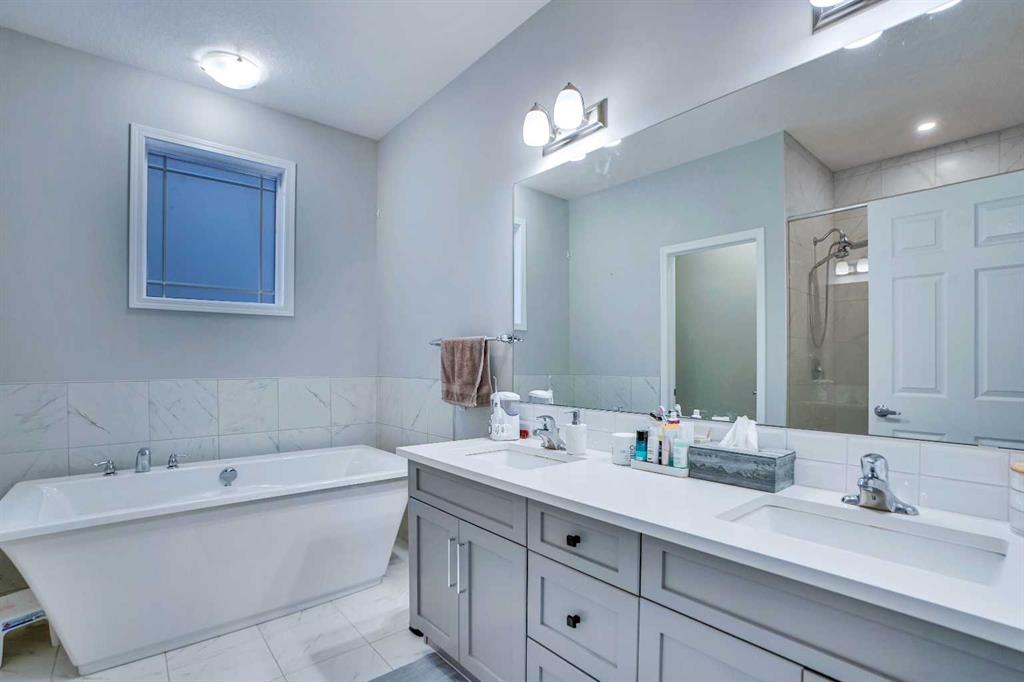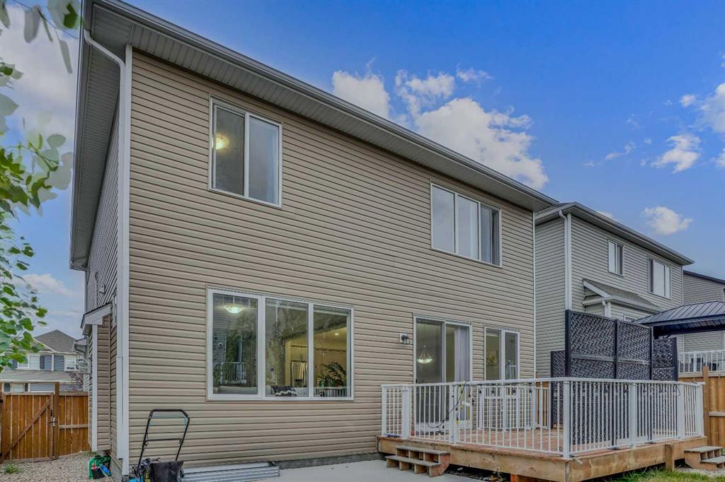 GORGEOUS 2167 SQUARE FEET TWO STOREY DETACHED HOME WITH DOUBLE FRONT ATTACHED GARAGE, SITUATED ON NICE WIDER LOT AND HAS VERY OPEN AND SPACIOUS FLOOR PLAN ! HUGE LIVING ROOM WITH FIRE PLACE, BEAUTIFUL KITCHEN WITH ISLAND, NICE CABINETRY, DINING AREA, 9 FEET CEILINGS, UPPER FLOOR HAS 3 GOOD SIZE BEDROOMS AND NICE BONUS ROOM, CENTRAL AIR CONDITONER, GREAT LOCATION, FENCED, DECK , LOTS OF UPGRADES, 10 MINUTES DRIVE FROM CROSS IRON SHOPPING CENTRE, VERY EASY AND QUICK ACCESS TO CALGARY, CLOSE TO AMENITIES !