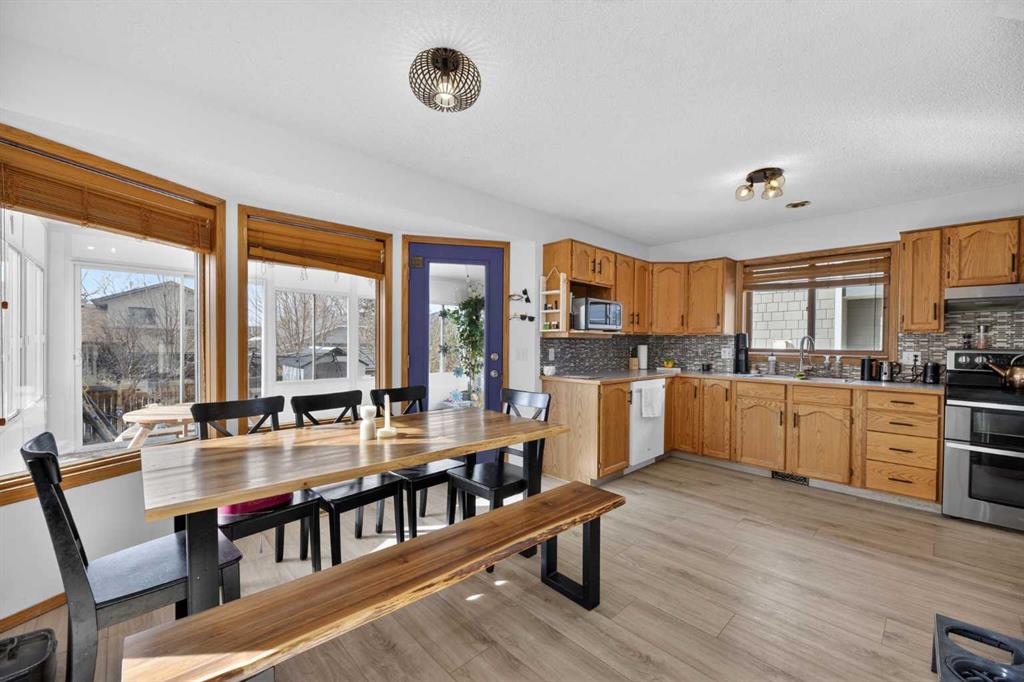 Tucked away on a quiet street in the established community of Meadowbrook, this home offers the space, updates, and location families are looking for. With mature trees, a large west-facing yard, and quick access to amenities, this property truly checks all the boxes. The main floor features a spacious kitchen with abundant counter and cupboard space and plenty of room for a large dining table—perfect for everyday living and entertaining. The dining area flows comfortably into the family living space and can easily double as a cozy reading nook. Just off the kitchen, the bright 18′ X 12′ three-season room provides additional living space and a great spot to relax while enjoying views of the backyard. Upstairs offers three bedrooms, including a generously sized primary bedroom with a large walk-in closet and convenient cheater access to the impressive 5-piece bathroom. The basement expands the living space with a large family room featuring a wet bar, plus a flexible area that works well as a home office, hobby space, or play area, along with ample storage. Recent upgrades include air conditioning (2019), a new garage door with opener (2020), vinyl plank flooring (2021), and a heated garage with plumbing rough in for a sink. Located within walking distance to schools, parks, and everyday amenities, and offering quick access to Queen Elizabeth II Highway for an easy commute to Calgary. Homes in this location with this much finished space and a large yard don’t come along often—book your showing today.
