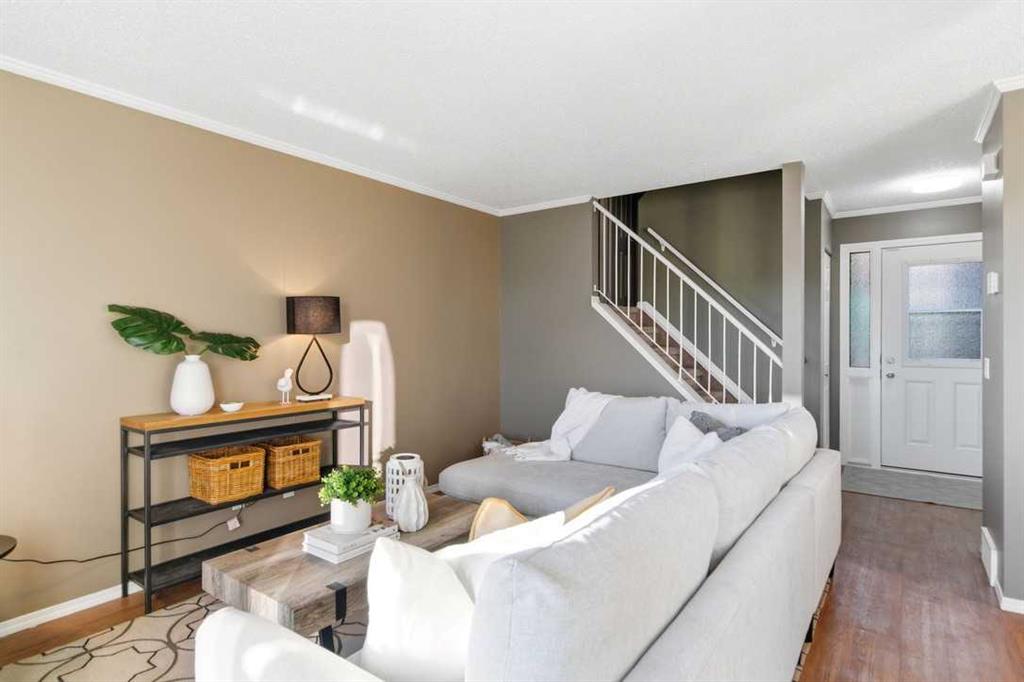 Stop renting and start owning! This affordable townhome offers a smart entry into homeownership or a solid rental investment. Welcome to Nose Creek Gardens, a pet-friendly complex, where this desirable interior end-unit 2-bedroom home offers strong attraction for buyers. Advantages of Unit 6’s location include fewer shared walls for reduced noise, extra windows for elevated natural light, and no parking-lot exposure. Move-in ready, the main level showcases a bright, open-concept floor plan with laminate hardwood flooring and fresh, neutral paint tones throughout. The stylish kitchen with timeless shaker-style cabinets, modern black appliances, and breakfast bar flows seamlessly into the dining and living areas. From the living room, patio doors open to a private, fenced-in backyard with deck and grassy space, extending daily living and great for entertaining. Upstairs, you’ll find a dedicated storage room and linen closet, plus 2 generously sized bedrooms and a 4-piece bath with a reglazed tub (Dec 2025). There is no shortage of storage with the front hallway closet, main-level crawl space, and dedicated laundry room that awaits your washer and dryer. Feel peace of mind with the home’s updated triple-pane windows (2021), high-efficiency furnace (2017), and recent new hot water tank (Dec 2025). Assigned parking stall with plug-in and ample street parking, plus the building benefits from Hardie Board siding and new fencing planned for 2028, which offers a compelling opportunity to buy in at today’s price ahead of these planned improvements for enhanced long-term value once completed. In the community of Greenview, enjoy quick access to Deerfoot Trail, McKnight Blvd, downtown, airport, with public transit steps from your back door. The Nose Creek Pathway systems make it easy to enjoy nearby parks and trails, in addition to the complex’s mature trees and landscaped pathways. Book your showing today! At this price point, this home delivers comfort and lifestyle appeal, suited to first-time buyers, downsizers, or investors.