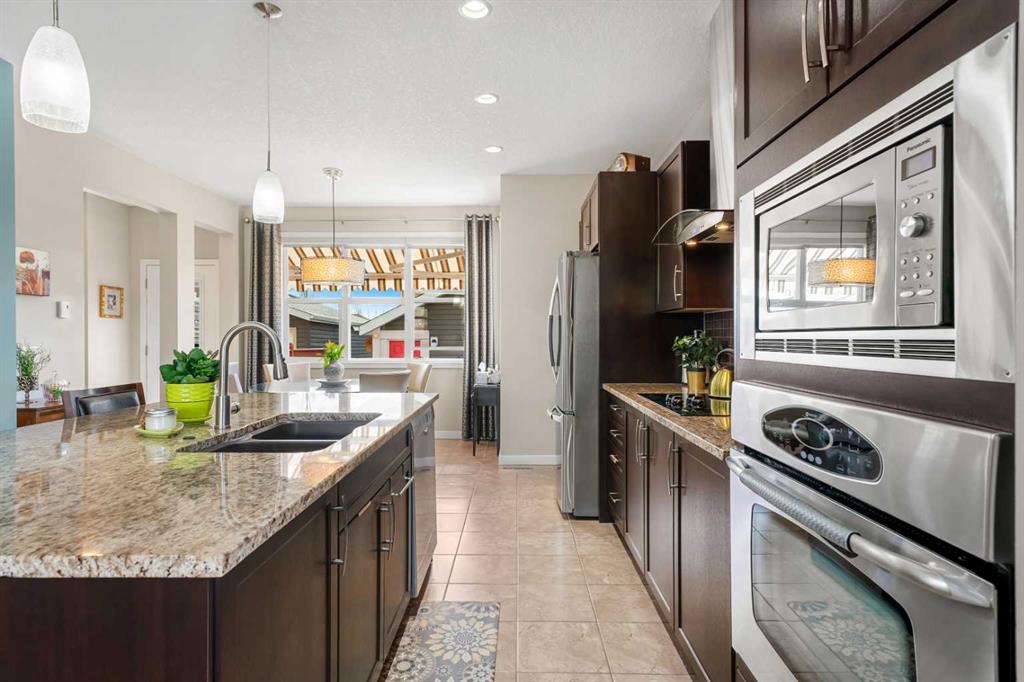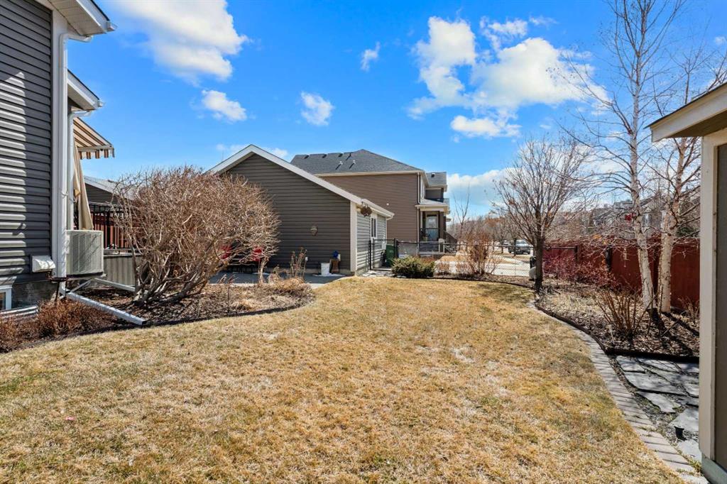 Welcome to Chaparral Valley—where lifestyle, nature, and thoughtful upgrades come together in a truly rare offering. This “once in a blue moon” opportunity presents one of the largest lots in the community, set on an expansive corner parcel of approximately 5,400+ sq ft—larger than many single-family homes. From the moment you arrive, the pride of ownership and attention to detail are unmistakable. The south-facing backyard with west escarpment views, and the wide-open park to the north is nothing short of exceptional, professionally landscaped with mature trees, stone features, underground sprinklers, and multiple outdoor living spaces designed to enjoy every season. Inside, this Jayman-built home offers the largest duplex floorplan in the area, enhanced with 9’ ceilings, extra windows added for natural light, and an open-concept layout that feels both spacious and inviting. The chef-inspired kitchen is beautifully appointed with granite countertops, stainless steel appliances, built-in wall oven, electric cooktop, and a large island with double sink and Bosch dishwasher—perfect for everyday living and entertaining alike. Heated tile floors, custom cabinetry features, and premium window coverings elevate the entire main level. The open concept living is perfect for those who like to entertain and having the kitchen dinning flow out to the backyard, whicht is any persons dream. With a half bathroo,m this main floor is perfect for family, or a couple. Upstairs, you’ll find generous bedrooms including a primary retreat with a large walk-in closet and thoughtfully upgraded finishes throughout, and view overlooking the park, greenspace and the square. The additional main bathroom is equipped with lots of counter space and storage with two good sized bedrooms. While the basement offers future potential with rough-in plumbing, added insulation, and upgraded soundproofing. Downstairs has 2 bright windows and washer dyer with sink, and a folding table. The basement offers an easy space to finish off if you desired. Additional features such as air conditioning, water softener, Vacuflo system with the best little retractable hose vac tucked under the kitchen sink (No more crumbs) The outdoor experience here is unmatched featuring a composite deck with retractable awning, custom stone patio, slate entertaining area, and a fully fenced yard complete with a dedicated dog run with artificial turf. The oversized 22×24 insulated and drywalled 2 car garage also feature a storage, and a workbench station, additional paved parking just for you, and potential RV space ensure there is room for everything—whether it’s vehicles, toys, or hobbies. Recent updates include roof 2021, west siding, and hot water tank 2020, 2026 new aluminum railing on the front porch, composite decking for no maintenance out the back, provides peace of mind and turnkey living. The location is equally impressive—directly across from a playground and park, and just steps to an extensive pathway system